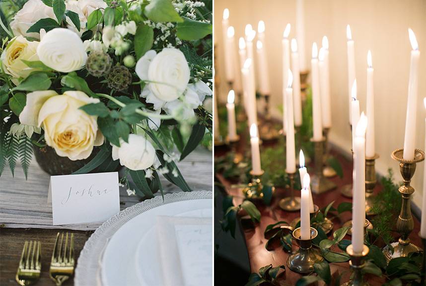 Side Table, Candlestick Holders, Chargers, Flatware, Table, Chairs | Loot Vintage Rentals