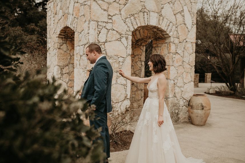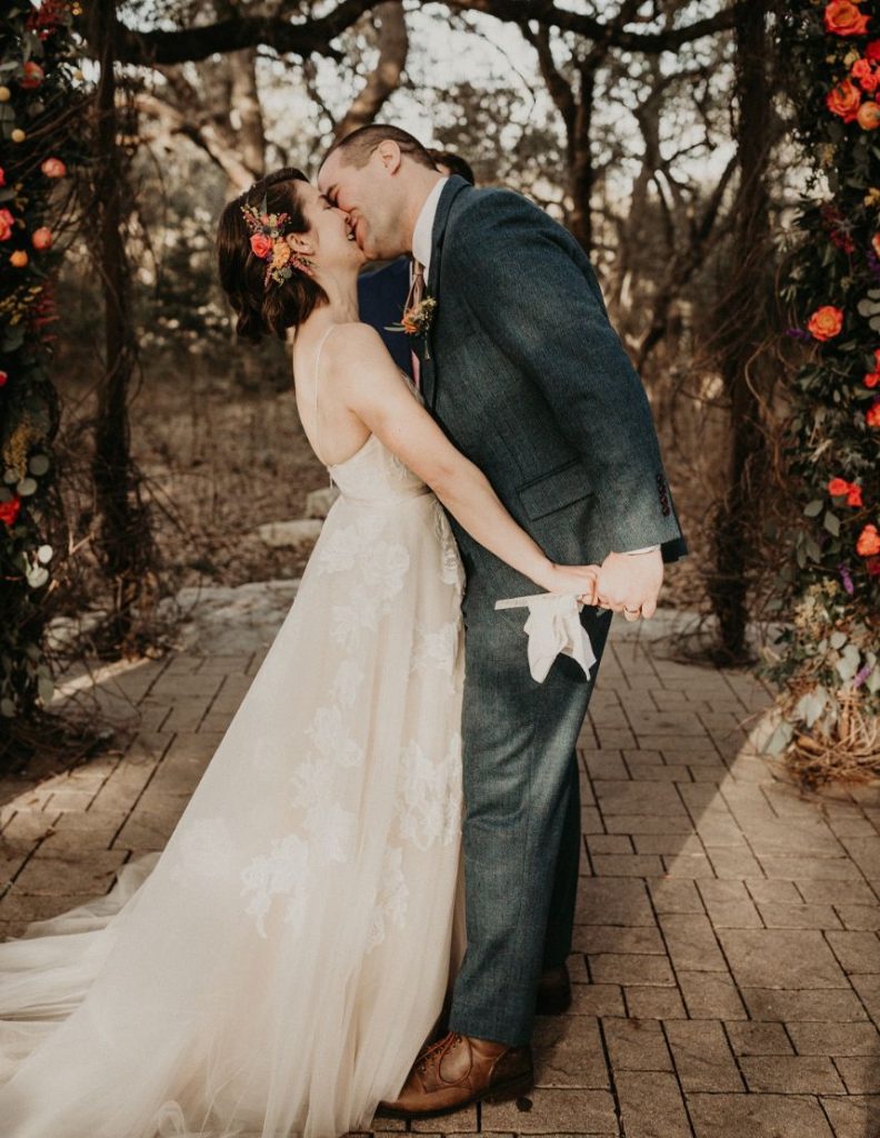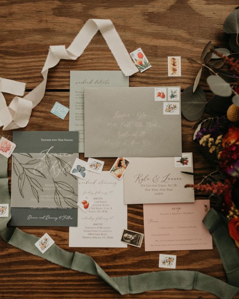 Planned by Lotus Events, this organic wedding was the definition of a romantic affair! Lauren and Kyle’s vision for their wedding centered on family and friends – they wanted for their wedding day to feel like a giant family reunion in a beautiful setting that felt like home. The outdoor ceremony space of Sacred Oaks at Camp Lucy reminded Lauren of the great oak tree in her back yard growing up in Connecticut, so the Austin venue made a perfect fit for this pair. Guests got the wedding memo in the form of invitation suites designed by Owl & Envelope in shades of olive and sage that have a forest feel to them, and we love the beautiful floral designs paired with lovely scripted calligraphy. Lauren and Kyle opted for a first look, and the groom’s reactions did not disappoint – cue all the happy tears! In a reception reminiscent of an ancient feast underneath the venue’s high wooden ceilings and chandelier, the bride and groom made their grand entrance, then headed straight into their first dance before settling into a delicious dinner catered by Whim Hospitality and speeches. From bartending and lighting to rentals, decor and organic floral design, Whim Hospitality covered it all and then some! The musicians of Plush Party Band played three sets, with each one building upon the energy of the last and keeping the dance floor packed all night. Getting people involved and moving early in the night is at the top of their priority list and guests loved getting the opportunity to join them on stage for a rendition of “Shout.” There are so many sentimental moments to be seen throughout this organic wedding, all captured by Nikk Nguyen Photo. Read on to hear from the bride about one of her favorite wedding vendors and why. Cheers to Lauren and Kyle!