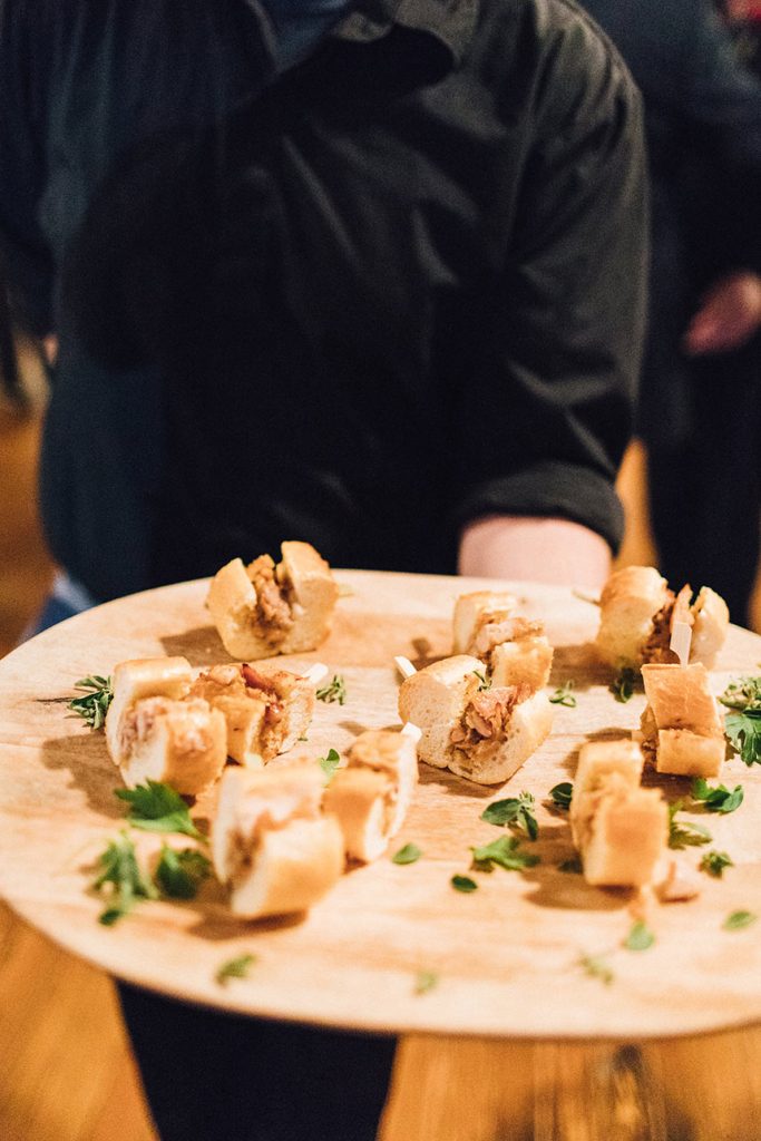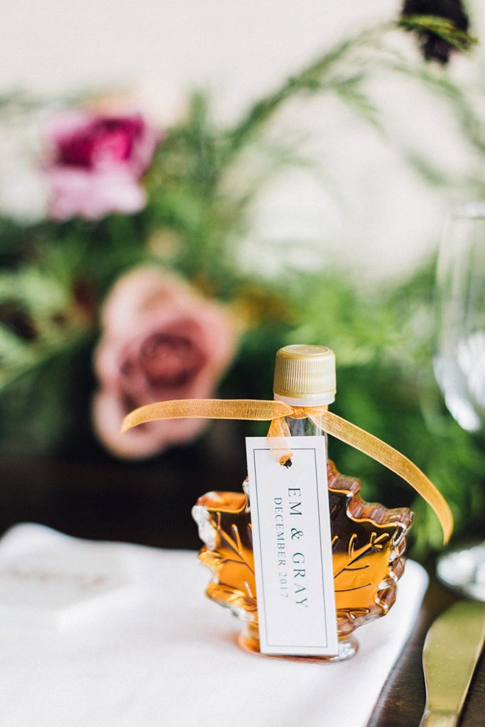 As guests made their way down to the reception, Emily and Grayson stopped by the bridal suite to soak in the moment. They also took a few photos with their families while loved ones sipped the “his and hers cocktails” – vodka lavender lemonade and whisky and Cokes. To the energetic tune of “My House” by Flo Rida, the newly named Mr. and Mrs. Grayson Ridge made their grand entrance to the reception. The room was full of lively conversation as guests enjoyed dinner and speeches were made with plenty of stories about ice hockey mixed in. Then, Emily and Grayson kept the momentum going on the dance floor. They shared their first dance as husband and wife to “Northern Wind” by City and Colour. “While it was four minutes long, it was seriously not long enough!” Emily remembers. She danced with her dad to “Sweet Child O’ Mine” by Guns ‘N Roses, and Grayson and his mom danced to “Blue Skies” by Frank Sinatra. From that moment on, the dance floor was packed. “We couldn’t help but feel like everyone was having a genuinely good time; the energy in the room was never low, and we just had a blast dancing with all of our friends,” Emily says. There was an especially spirited gathering for “Sweet Caroline,” the last song of the reception. Looking back at the night, Grayson says the photos showing pure joy tell it all. “Our wedding memories stem from those photos,” he says.