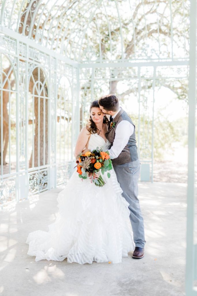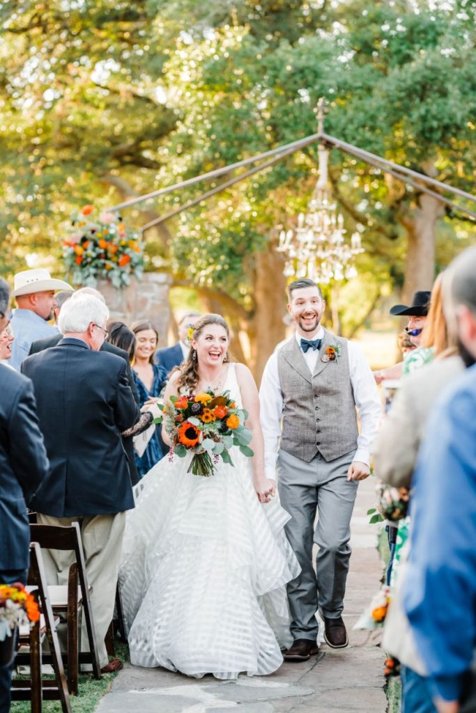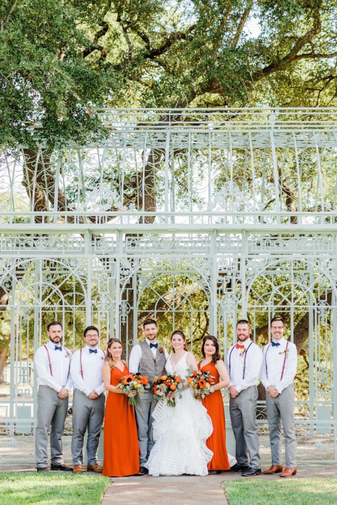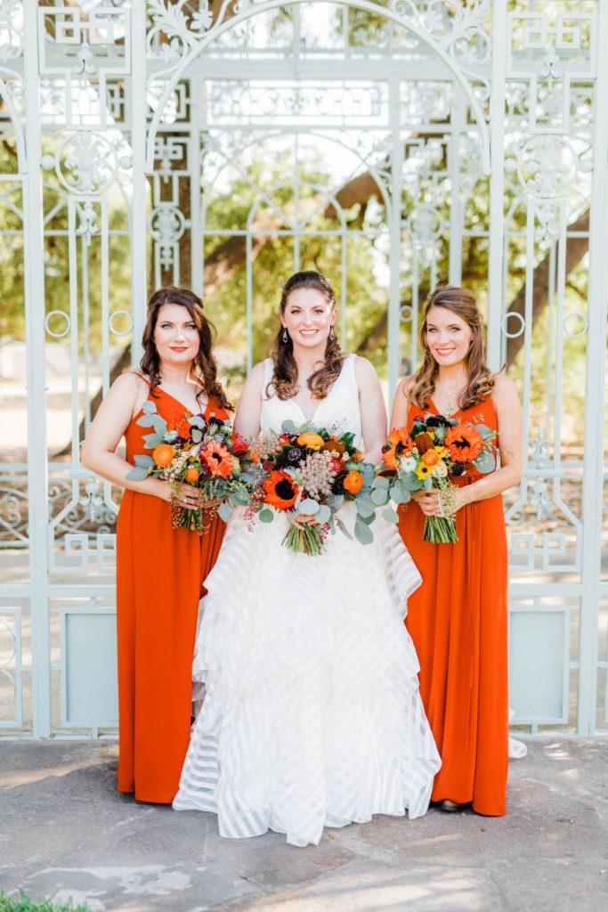 Bryttne and Colin’s organically opulent wedding is full of fresh florals and bolstering pops of burnt orange. Nestled in the wine country of Austin, the Ma Maison is a luxurious venue with European-inspired elegance. The site is ideal for any bride who needs her wedding dream brought to life! All the aesthetically pleasing accents of this affair were ensured with care by the easing planning of Kristin Catter Events, one of the bride’s favorite vendors. Other special thanks to the Premiere Events’ saints for providing earthy elements that elegantly entwined with the venue’s European extravagance. Fabulous florals from Flora Fetish left guests with relish. Not to mention, the bouquet was beautiful in the bride’s hand before she took her man’s. Dressed in a sheer tiered gown, this bride is just… WOW! Besides the bride stood her stunning in burnt orange bridesmaids, bringing a colorful light to this special night. With all underway, the bride and groom could actually enjoy their day. Looking back, one of the bride’s favorite wedding hacks was having dinner with her newlywed in the bridal suite while guests got the party started and sipped on signature cocktails. For more of Mr. and Mrs. Wragg’s wedding day swag, scroll below!