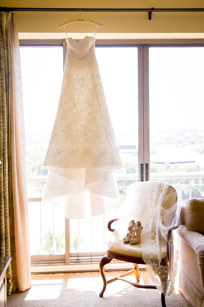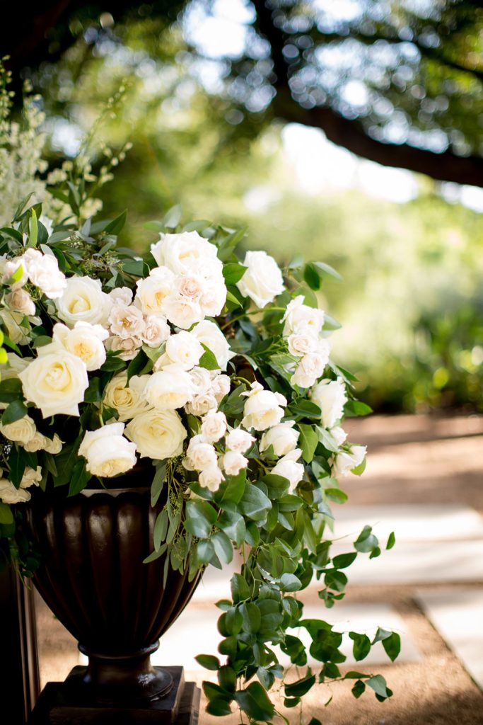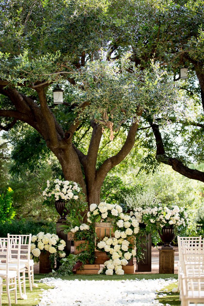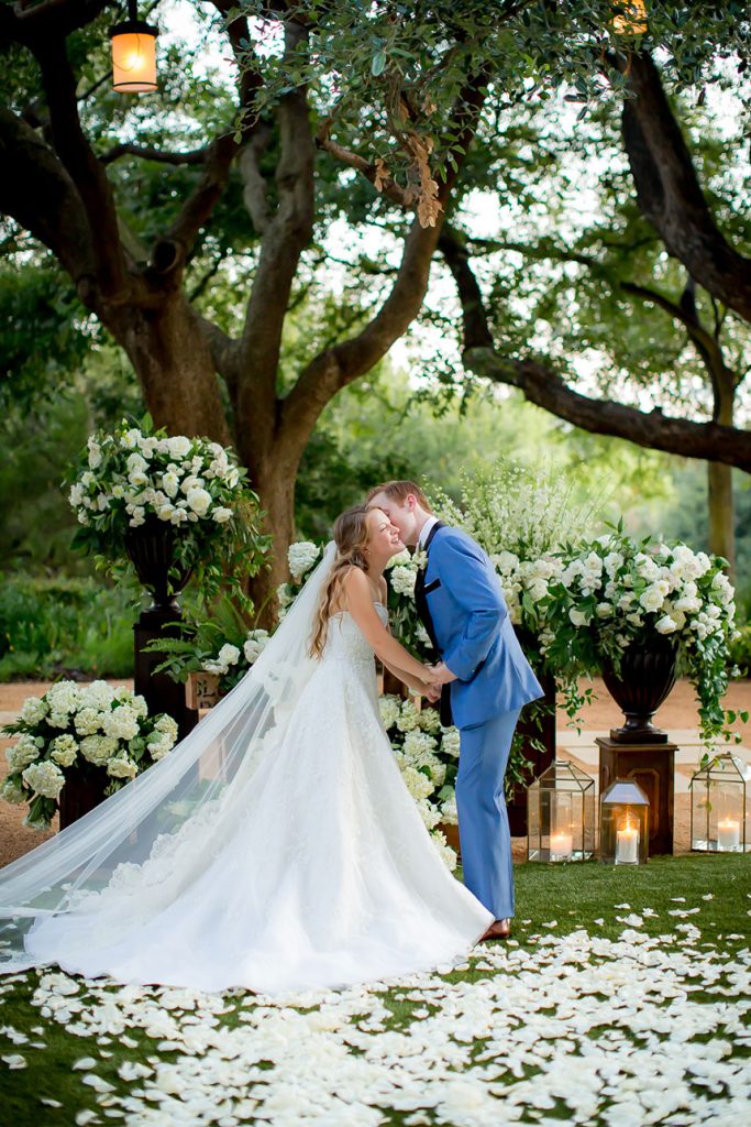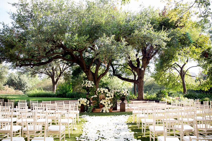 THE SETTING: The Four Seasons Hotel Austin was the perfect venue for Monique and Luke. They wanted an outdoor feel but with the perks of central air. Their ceremony was held on the beautiful back lawn of the Four Seasons and the reception in the foyers. Monique loved how Brock + Co. Events was able to bring the outside feel inside. The foyer was drenched in natural light, draped with greenery and given a sprawling gold dance floor.