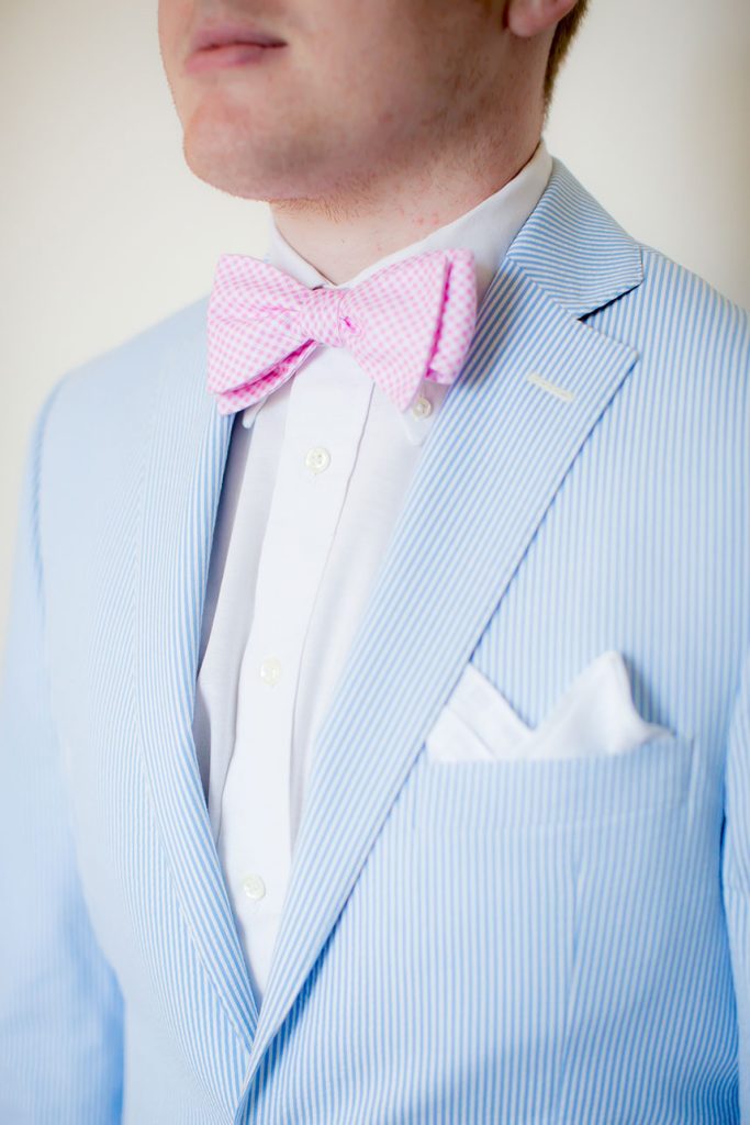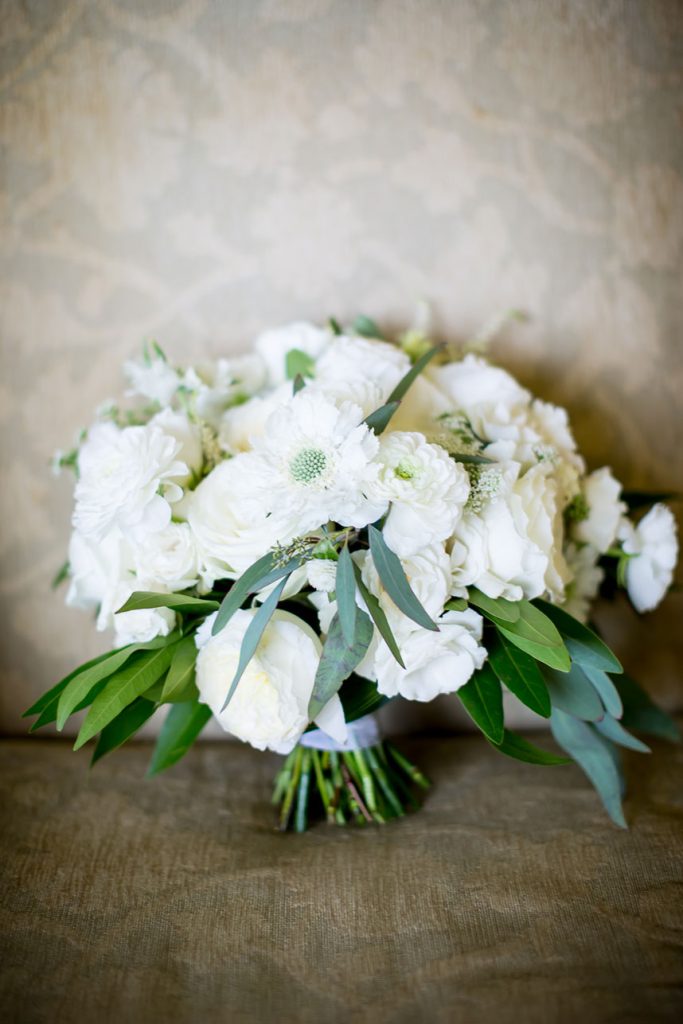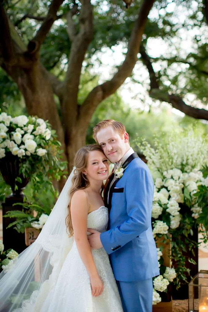 GET HER LOOK: The bride’s dress was a custom Oscar de la Renta gown inspired by his Spring 2015 collection, which featured lace printing on an organza A-line bodice with a fleur-embroidered tulle overlay and sequin embroidery. She wore her older sister’s veil, a cathedral-length Vera Wang. Monique finished her look with pearl and diamond studs from Tiffany & Co. that she got as a birthday gift from Luke.