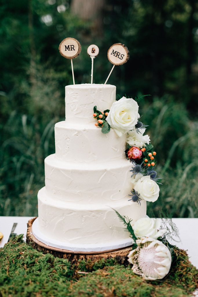 SAVORY SWEETS: Sweet Treets Bakery created a three-tier cake for Sarah and Michael with an Italian cream layer, lemon cake with raspberry filling, and a white cake layer with champagne soaked strawberries and buttercream icing. Michael’s groom’s cake was chocolate with peanut butter icing and peanut butter cups crushed on the top.