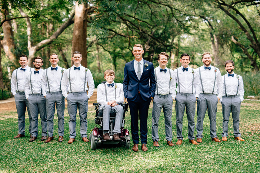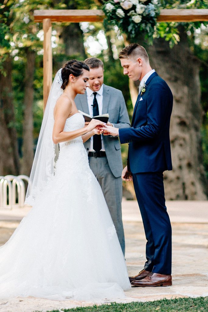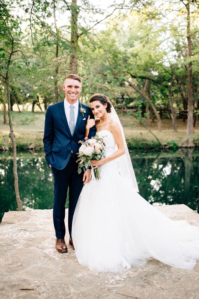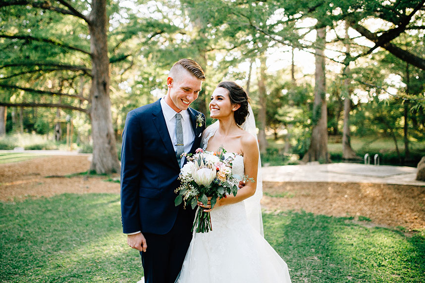 PERFECT PROPOSAL: Michael took Sarah to an early dinner at a local favorite, Salty Sow. They grabbed a quick cup of coffee after dinner and drove out to Wimberley. He took her to Mount Baldy in Wimberley, and they climbed to the top. Michael had always told Sarah that he wouldn’t tell her that he loved her until he had a ring to back up the weight of those words. So they sat on a blanket, and he told her how much he loved her. He quickly pulled her to her feet, knelt down on one knee, and asked Sarah to marry him. She, of course, said yes. Her sister-in-law was hiding in the bushes taking photos. Michael then took Sarah back to her parents’ house where he had invited all of their closest friends and family to celebrate.