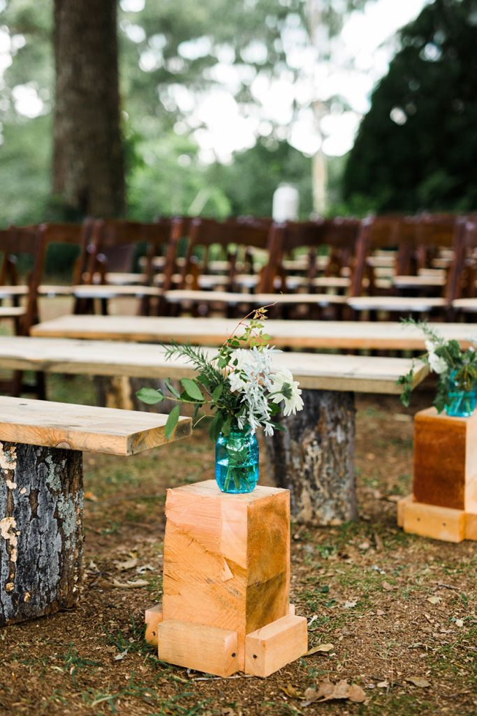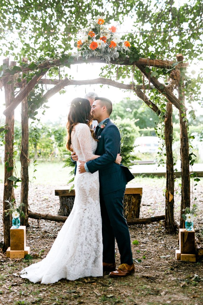 AMAZING ALTAR: The arch was made out of cedar tree posts, and was adorned with gerbera daisy and greenery swag.