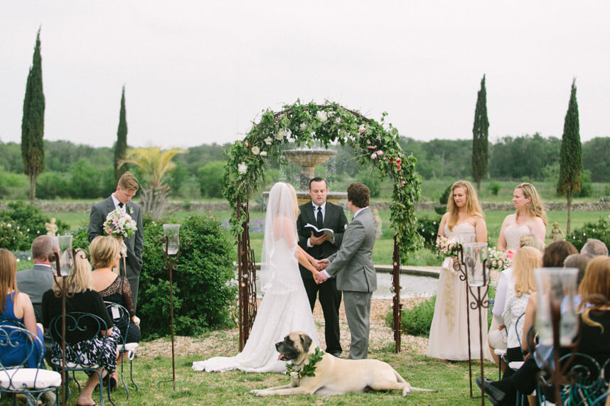 THE SETTING: Rachel and James wanted their wedding day to be a celebration of their love for each other, the gratitude they felt toward the people surrounding them, and the commitment they made before God, their families and their dearest friends. The couple and their wedding planners, The Nouveau Romantics, let the natural beauty of the landscape at Le San Michele dictate the wedding décor.