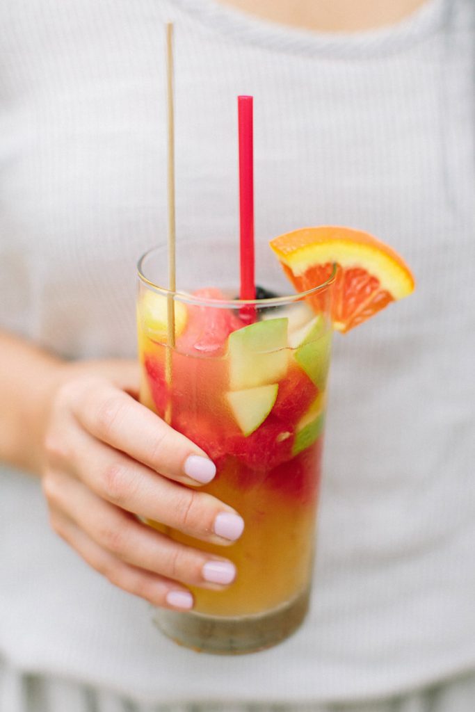 DELICIOUS DISHES: Rachel and James wanted their guests to feel like they were at a fabulous dinner party, complete with comfort food, great wine and excellent conversation. The reception dinner was served family-style, along with margaritas, wine, beer and champagne.