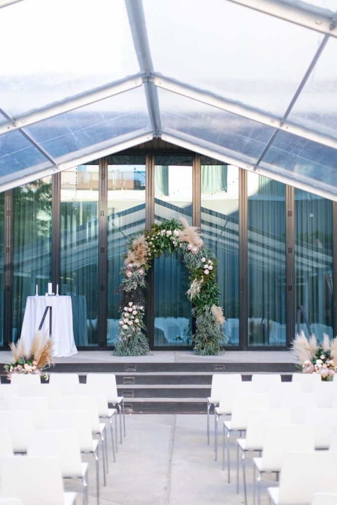 From the bride on her favorite wedding detail: “Stephen’s grandmother officiated, and we incorporated quite a few Mexican traditions in honor of Stephen’s heritage. Each team of Padrinos and Padrinas showed their support for us by offering arras matrimoniales and el lazo and by the end of the ceremony.”