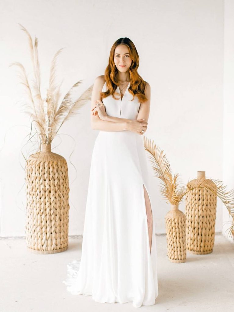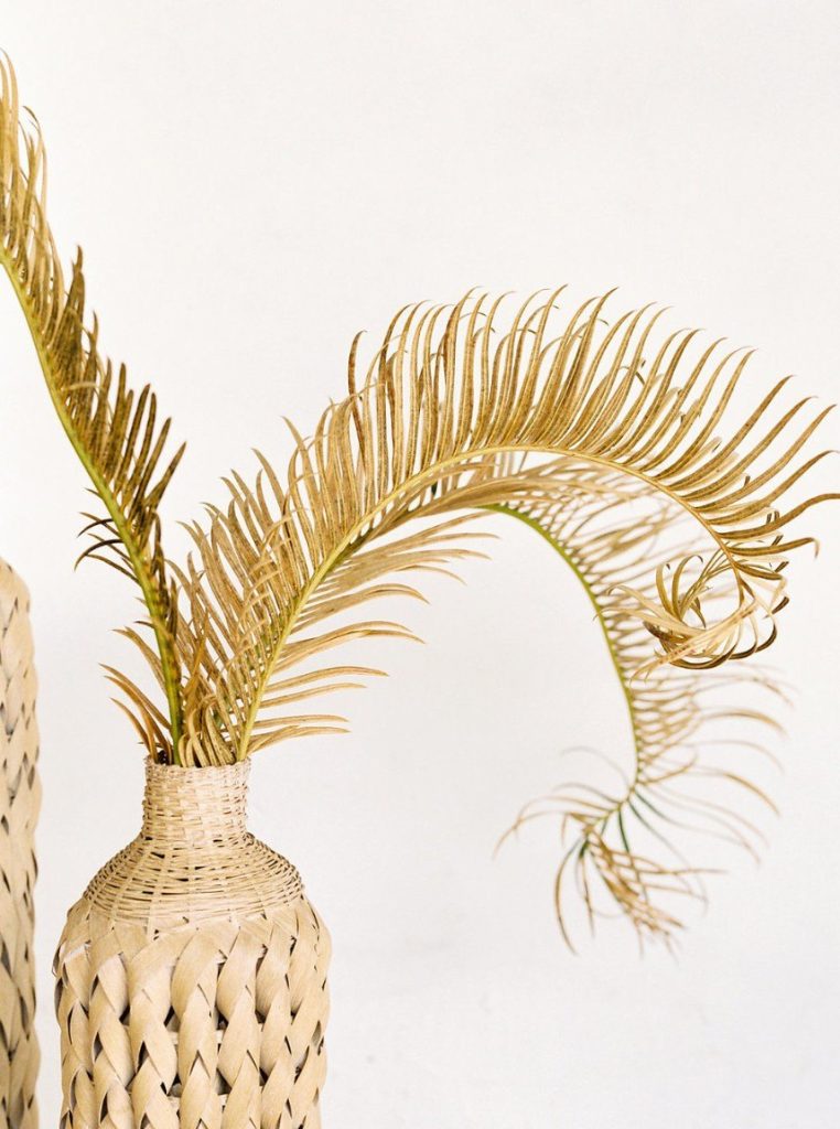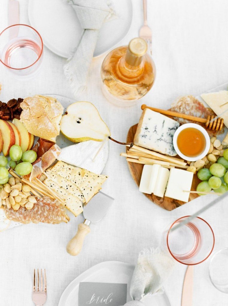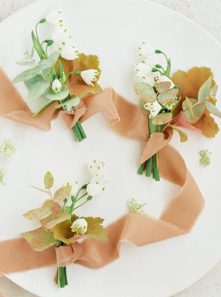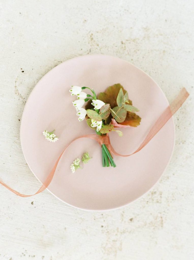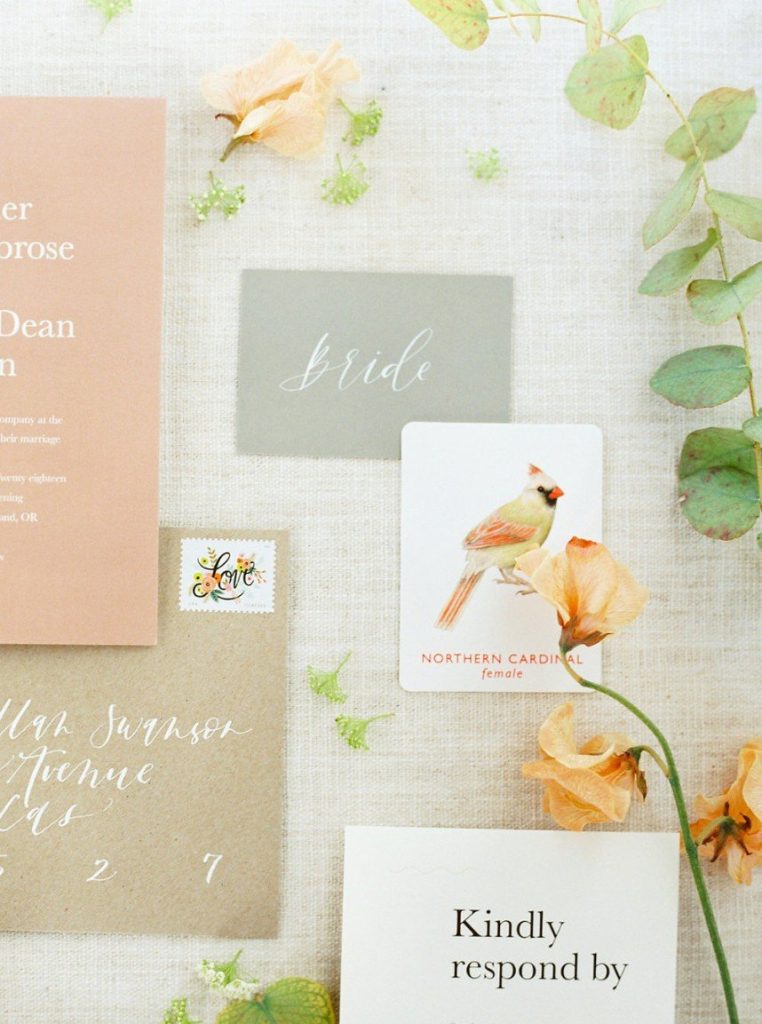Trust us when we say the florals in this peachy textured styled shoot are some of the dreamiest we’ve ever seen! Clementine Botanical Art‘s floral design absolutely mastered gorgeous color pairings in organic bouquets to bring life to this scene. Contemporary copper chairs from Loot Vintage surrounding a heavy wooden table adorned with decadent charcuterie and more gorgeous blooms give an updated Mediterranean feel to the aesthetic, and the details keep getting better from there! Lovely calligraphy is accented by bird graphics and tall, feathering plants in boldly textured baskets, and the bride’s chic deep-V gown from Unbridaled makes a statement along with her effortless auburn locks and copper-toned makeup. The metallics, pale yellow and pops of rose gold all complement the peachy textured look so well and make this wedding inspiration something from a dream. Happy scrolling!
