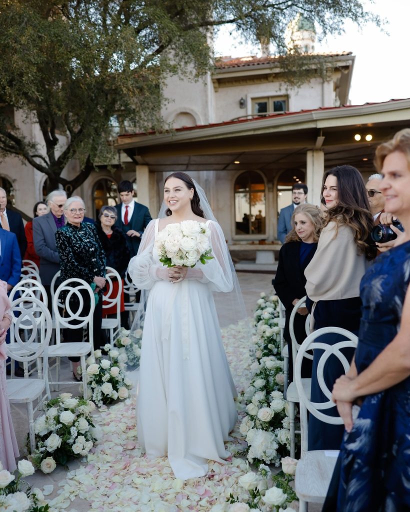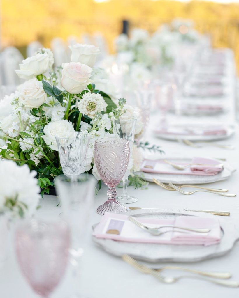 Maddie + George’s wedding was nothing short of breathtaking. Soft white and blush details set the tone for a romantic day, with delicate petals lining the aisle all the way to the altar.
