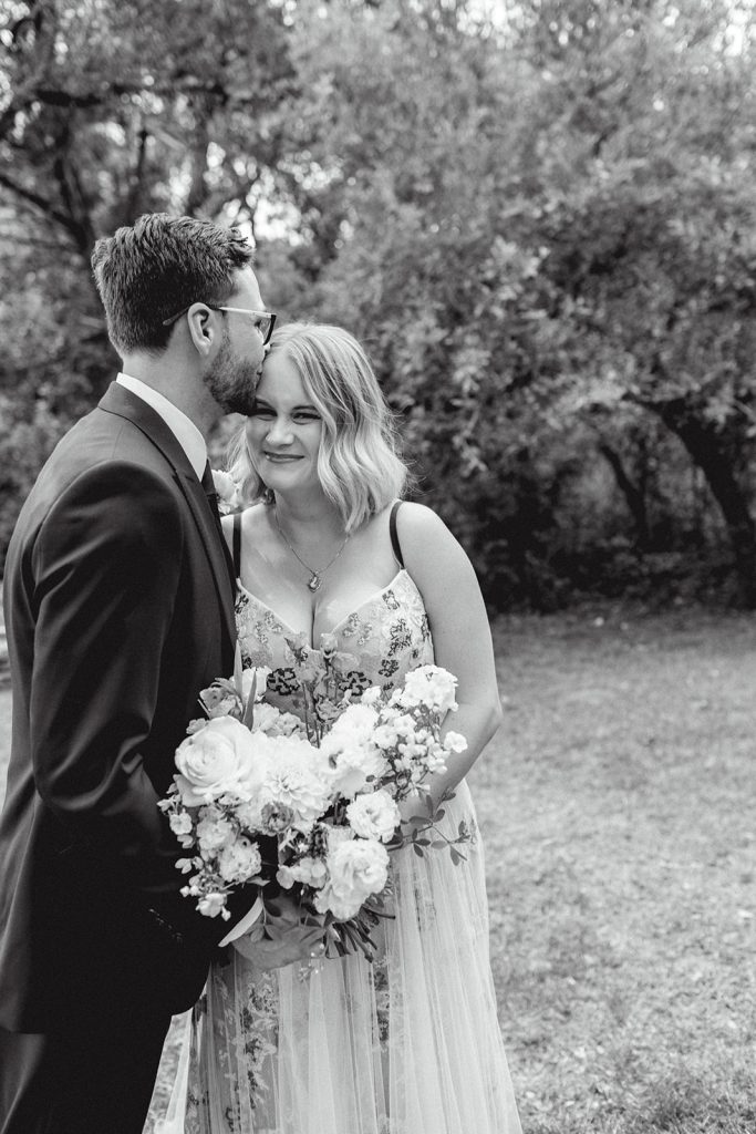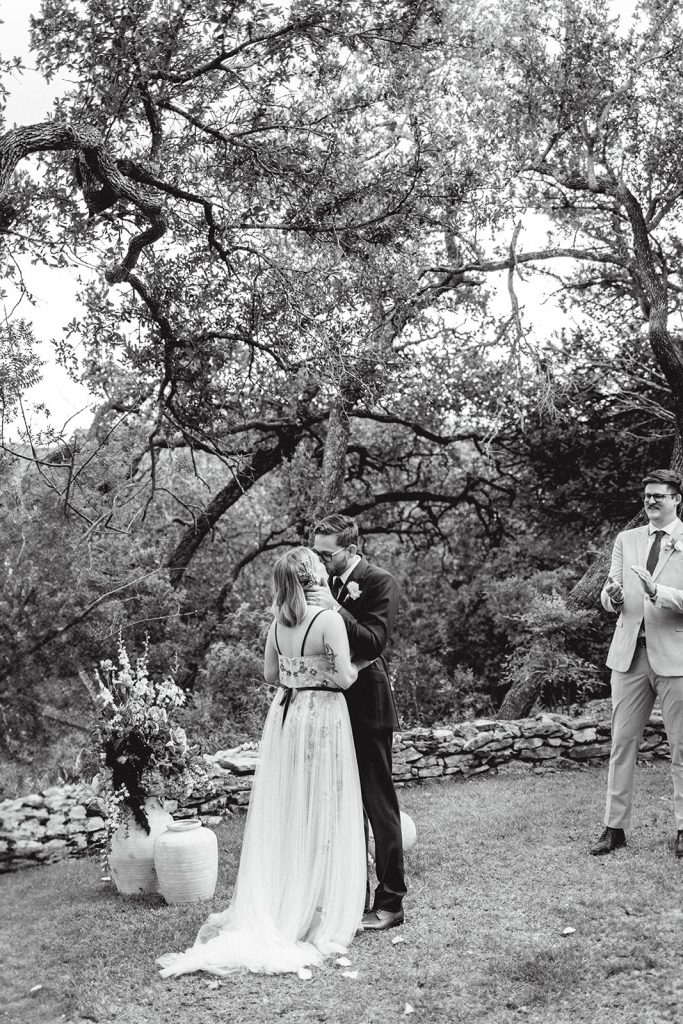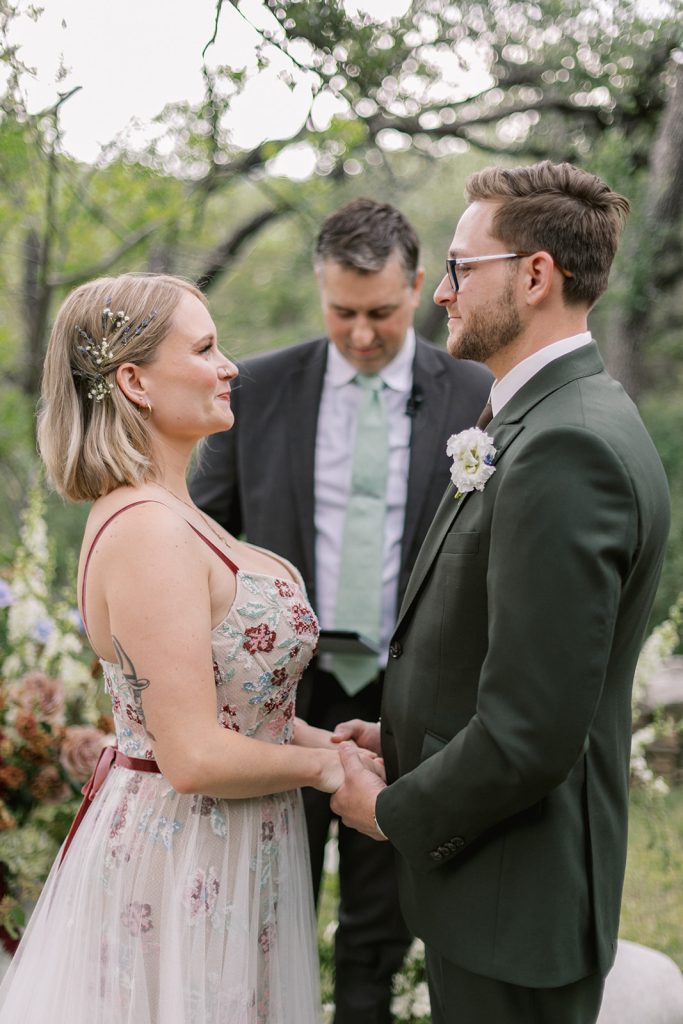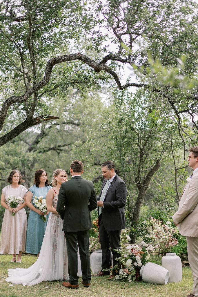 Rebecca and Colton’s wedding day was beautifully quiet and full of intention. Set in a tucked-away garden in Austin, the two said their vows beneath the trees, surrounded by just their closest people.