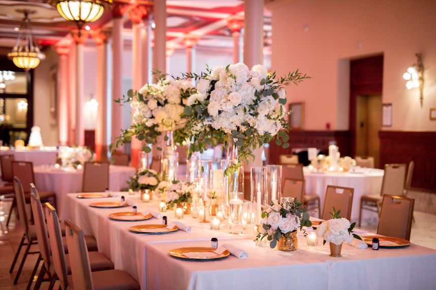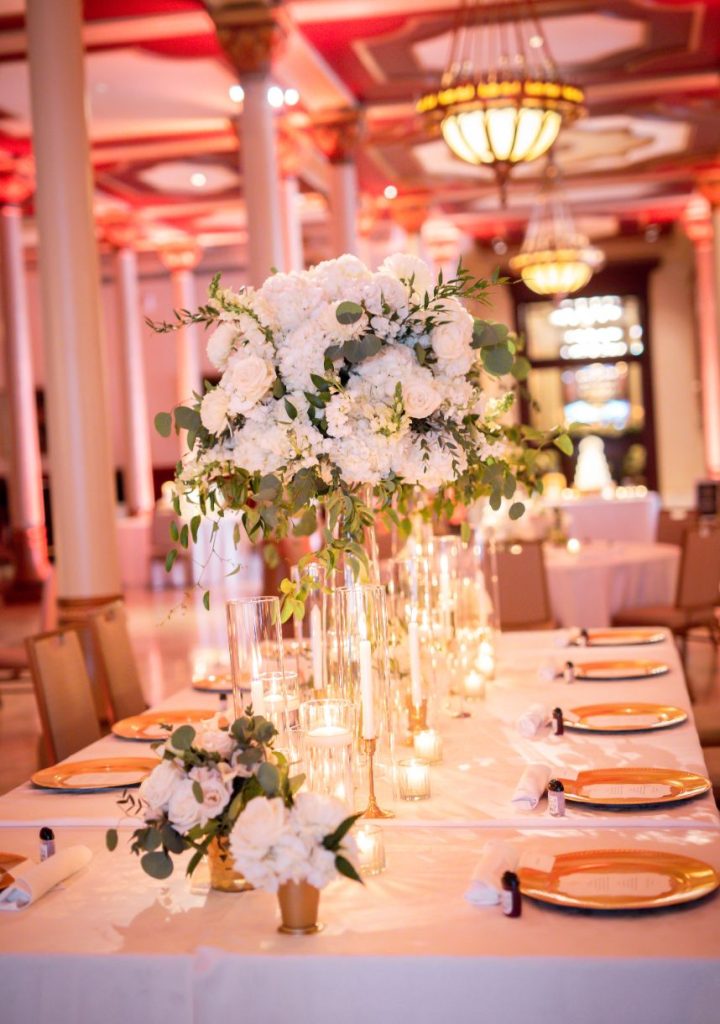 Between the hints of gold, lush florals and Megan’s glamorous dress, it feels like we are in the midst of the Roaring Twenties! Planning a wedding can be quite overwhelming (especially in the middle of a pandemic), but thanks to Kristin Catter Events, Megan’s dream wedding came to life, and it was all things grand and glam!