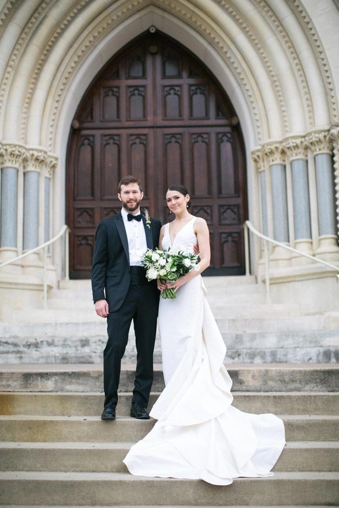 Take a peek at Annie and Andrew’s romantic candlelit Austin wedding! Glowing edison bulb chandeliers draped in greenery and dreamy candles were the only lights inside the reception venue and created an ambience more beautiful than the couple had dreamed!