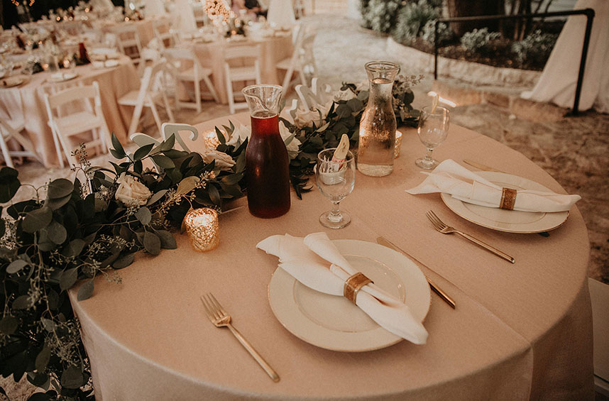From the bride: “I loved sitting next to my husband watching all our family and friends enjoy themselves. The decor was perfect – the flowers, candles, chandeliers, string lights, the tent! All the details fell together to create our dream wedding!”