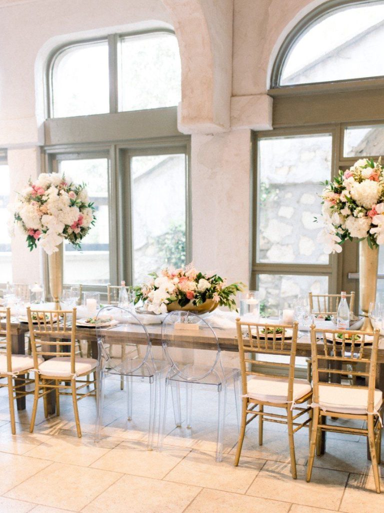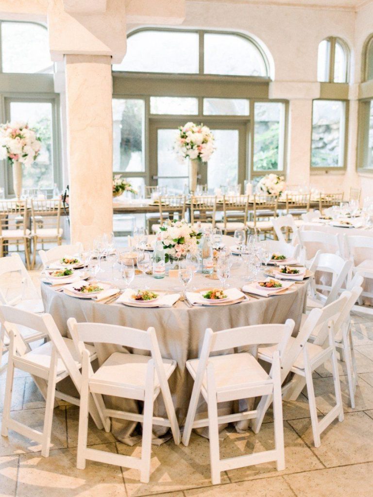 It’s the little details that make Kate and Chris’s romantic villa wedding such a lovely affair! From the sweet, soft pink shades on their cake by Simon Lee Bakery and charming decor from Marquee Event Rentals. The bride is positively glowing with her hair and makeup from Jose Luis Salon. True love is something to celebrate, so the happy couple kicked off married life with the Royal Dukes Band. Enjoy scrolling through these oh-so-pretty wedding details!