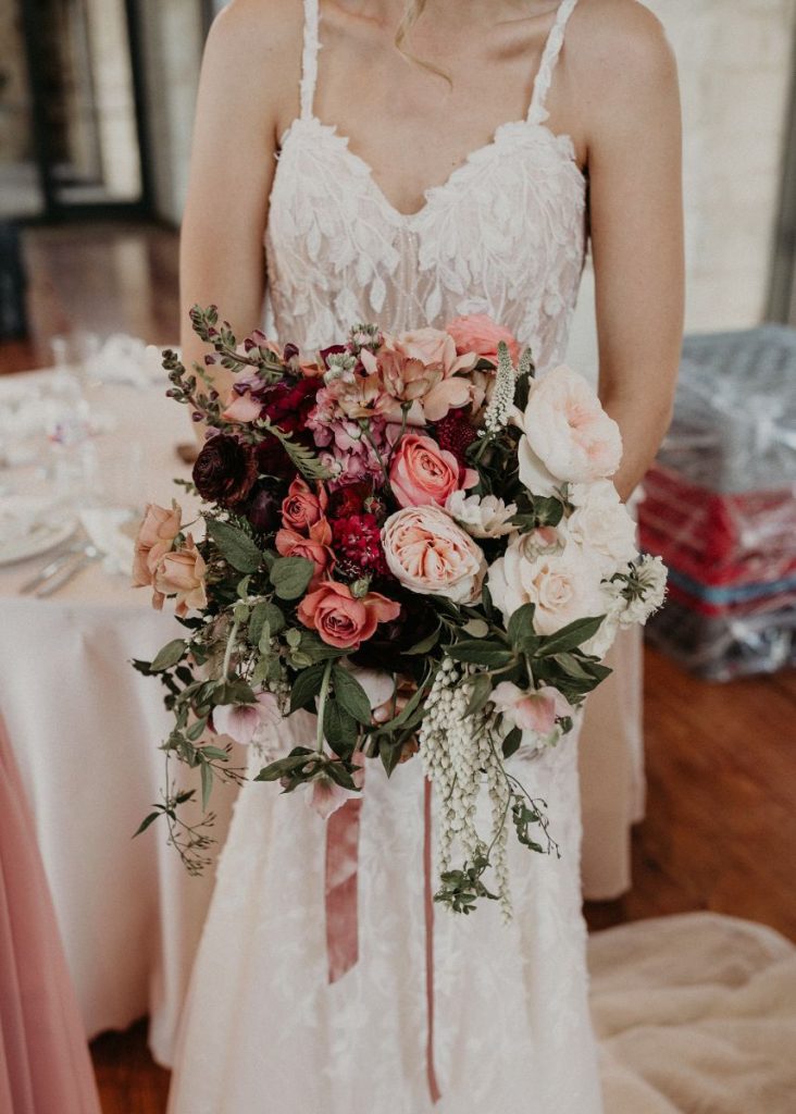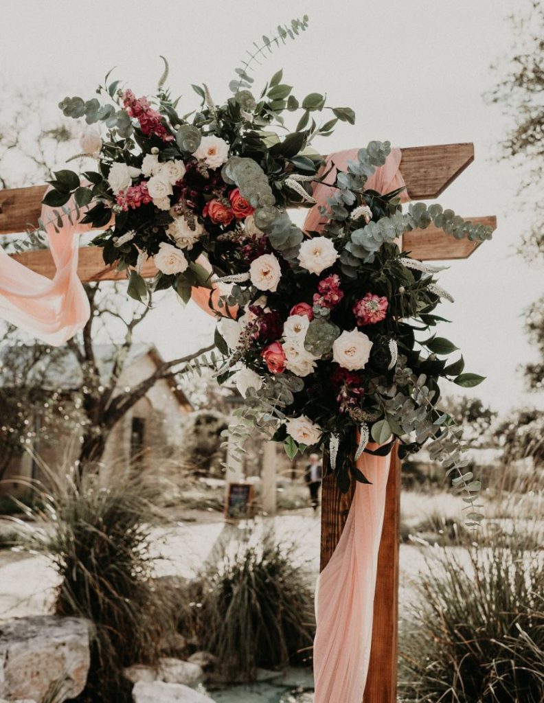 This wedding combines all of the best rustic, dusty rose and garden details into one scene we’re truly captivated by! Beautiful blooms in eclectic shades of pink and dusty rose by Wildly Cultivated Floral Design pop against rustic wood accents and make for stunning arrangements at the altar, for the bride’s bouquet, and as centerpieces adorning their reception tables. Ivory details make for the perfect complementary color to balance this scene, as simply minimalist all white place settings and table linens make for a beautiful addition to their outdoor garden party. Filled to the brim with only the best rustic and dusty rose details, this garden wedding planned by Kristin Catter Events is filled with all the inspiration! We seriously can’t stop looking through their wedding gallery, captured expertly by the always-amazing Nikk Nguyen Photo. Scroll to see all of the oh-so lovely details of Mary and David’s romantic wedding day and to read a wedding planning tip from the bride herself. Cheers to Mr. and Mrs. Oliver!