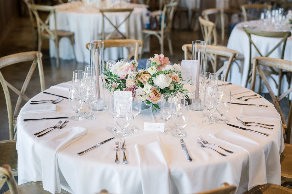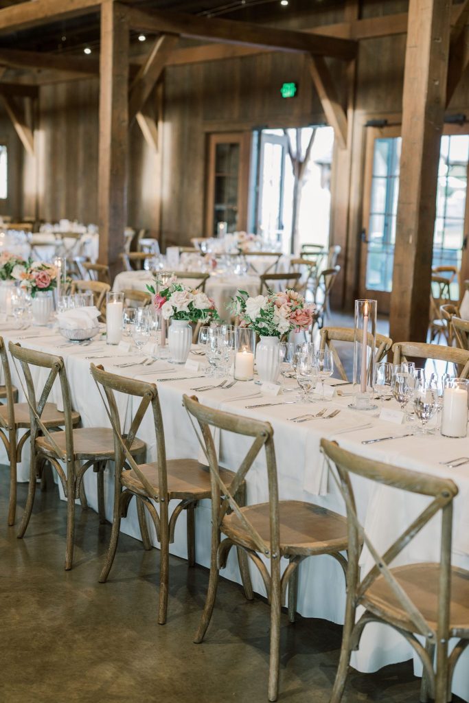 Hidden River Ranch Weddings and Events held the elegant and rustic wedding celebration of Meghan and Kyle. The venue was beautifully adorned with florals (peep the fireplace!) by The Vintage Bouquet, while every other charming detail was planned by Scarlet Rose Events.