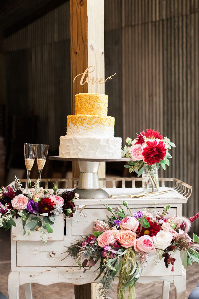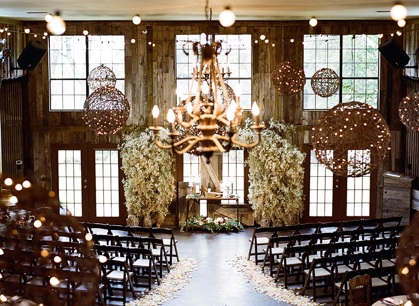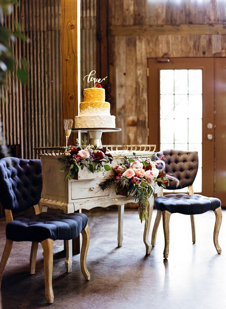 THE SETTING: Molly and Ross were married at Vista West Ranch. It is a unique blend of rustic bohemian chic with weathered wood, aged tin, stained concrete floors, and willow sphere lighting inside the barn, which doubled as both the ceremony and reception venue due to inclement weather on the day of the wedding.