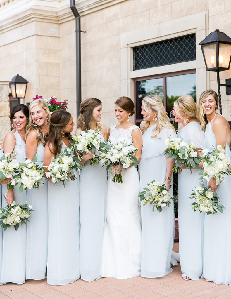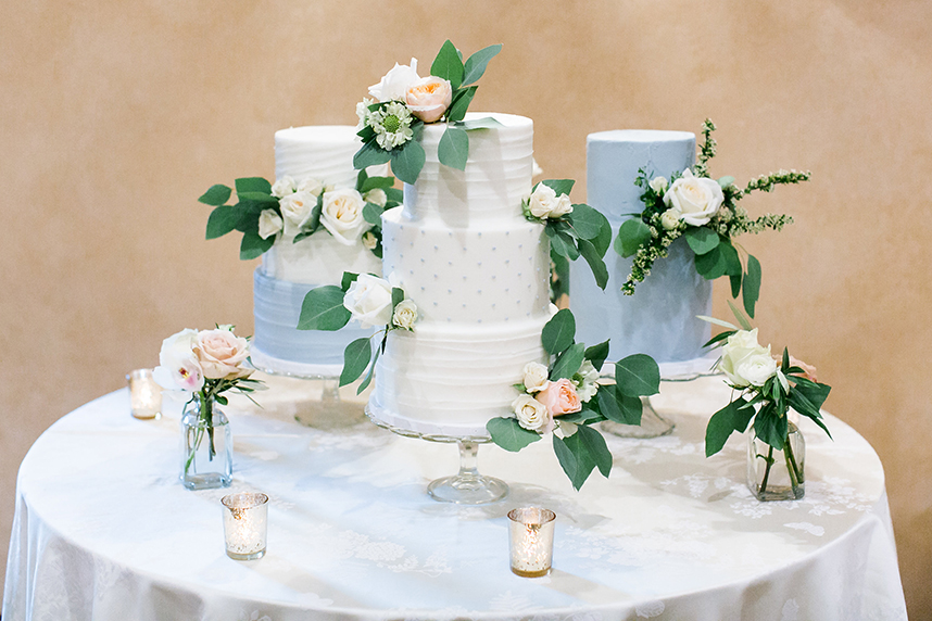 Chock-full of undeniable Italian influences, it would be impossible not to love every image of Sarah and Jay’s charming rustic wedding captured by Mint Photography. With its stone walls, earthy color palate and abundantly placed greenery, Hotel Granduca provided the perfect Tuscan-like backdrop for the affair. Marquee Event Rentals created inviting tablescapes plentiful with the warm glow of glass candle votives and touches of gold in the place settings. Decor statements on their own, Sweet Treets Bakery crafted a cake trio in soft blue and white, with sprigs of greenery tying in the setting’s natural elements. Of course, we couldn’t forget about the bride and her maids, all dressed in soft powder blue gowns from Bella Bridesmaids. The bride and groom’s gorgeous platinum rings from The Menagerie were the final touch to make this classic fête complete! Enjoy!