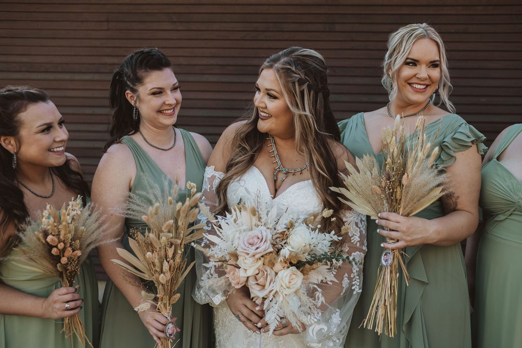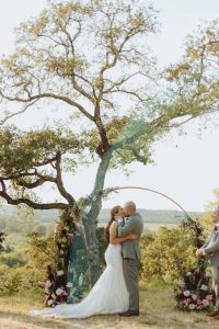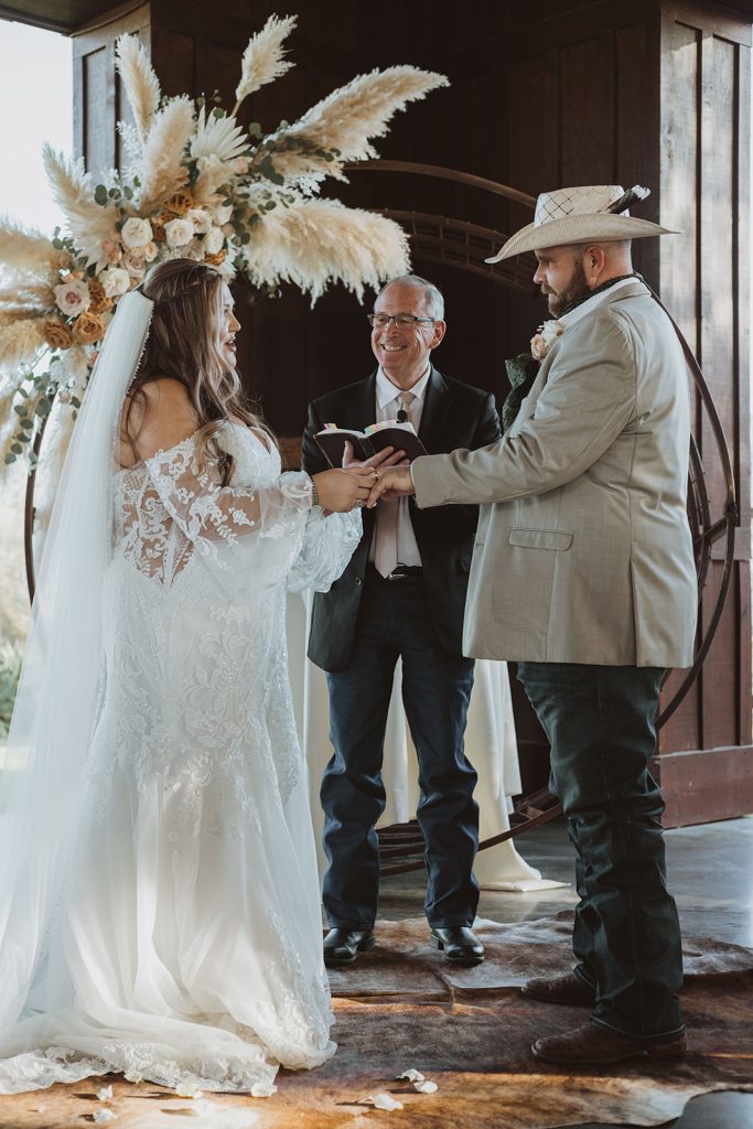Ashley + Peyton said “I Do” with a rustic ranch wedding. The pampas grass and the lace dress added a boho touch to their special day. Congrats to the newlyweds!