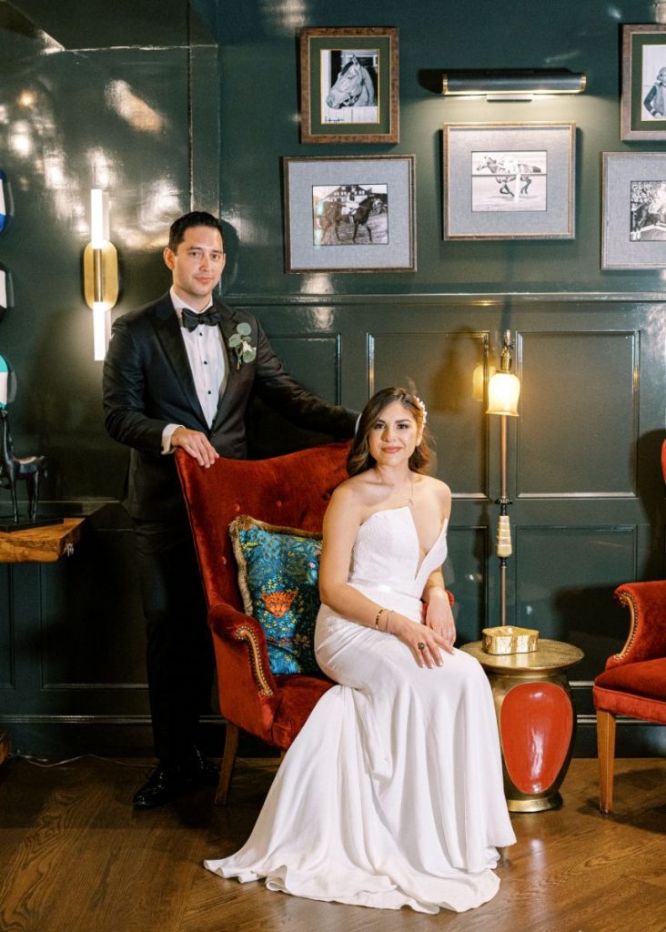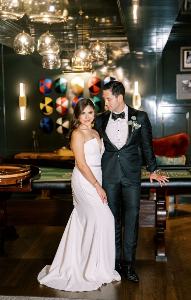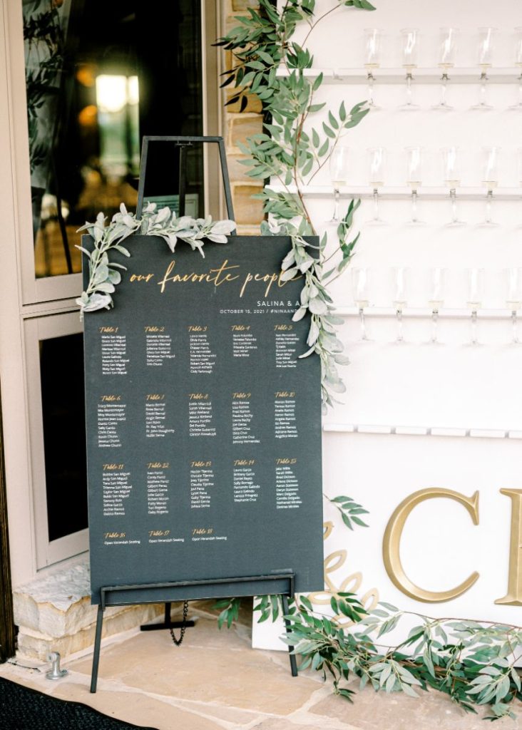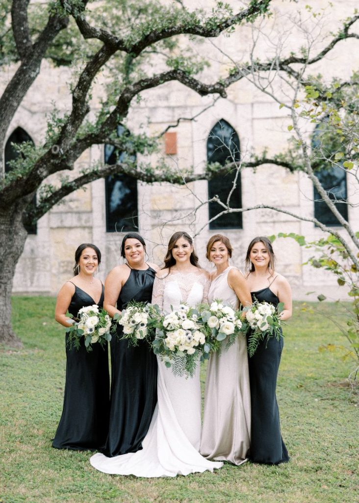Salina and Alejandro planned their intimate October wedding with a traditional and modern black and white color palette with gold accents and luscious greenery. Their wedding day began bright and early for Salina and her bridesmaids as they got ready with Think Brink Beauty. After getting all glammed up, it was finally time to head to the church for the ceremony. Salina’s priest, whom she has known since childhood, married the two in front of their family and friends. The couple hadn’t seen most of their loved ones in over a year. Therefore, their wedding felt extra special, reuniting with all their friends and family. After the intimate ceremony, guests made their way to happy hour. A fun surprise and hit for the guests was the casino the venue had set up for guests to enjoy. Salina jokes, “If we hadn’t shut it down- we could have stayed in there all night.” Fortunately, everyone made it to their beautiful reception with food, drinks, and lots of dancing. The talented Reagan Wright Photography captured every detail of Salina and Alejandro’s special day. You don’t want to miss a single detail, so keep scrolling!