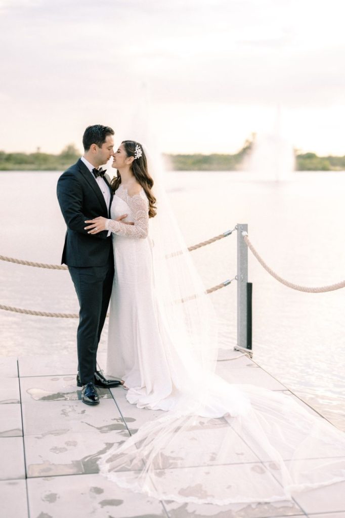 Salina and Alejandro’s Catholic Mexican wedding is full of rich greenery with a traditional black and white color palette. We think it’s safe to say that Salina and Alejandro were destined to be lovers. The couple started their long-time friendship when they were just kids at the beach. Salina and her family planned an annual trip to South Padre Island, where she first met Alejandro. Once a year, Salina and Alejandro picked up where they left off and developed a strong friendship. The couple both attended the same college, but their friendship only went as far as meeting up for a quick lunch to catch up. Postgrad, the two went their separate ways but would always see each other every summer back at the beach. Finally, after years of knowing one another, they decided to give a relationship a try. After seven years together and one pandemic later, Salina and Alejandro tied the knot with their closest family and friends.