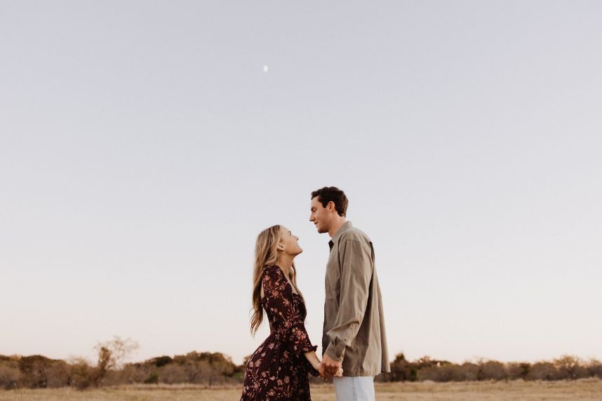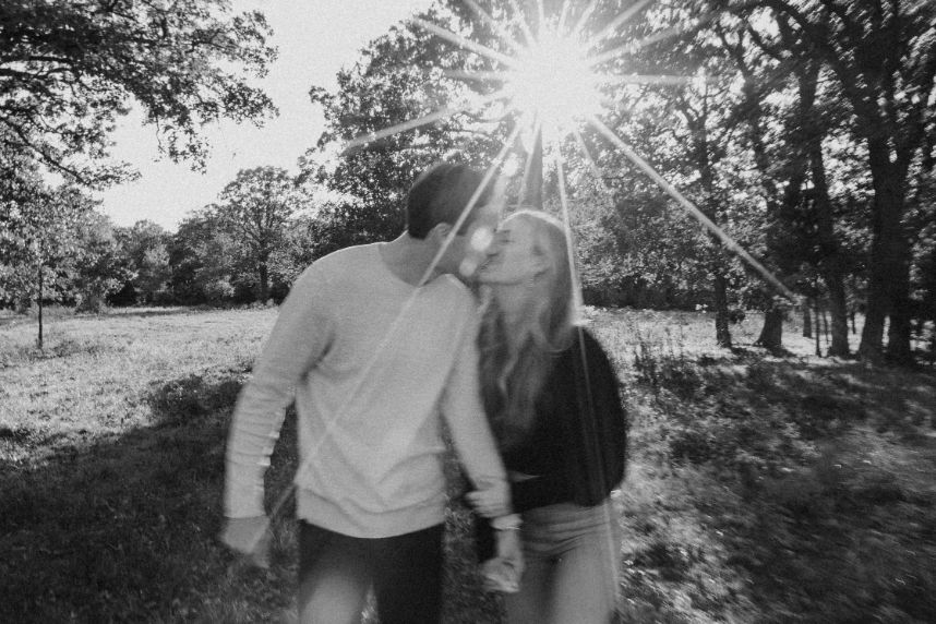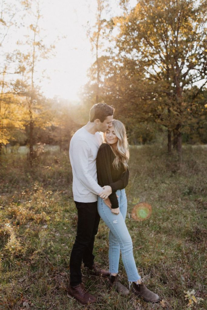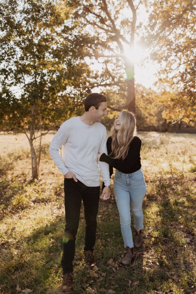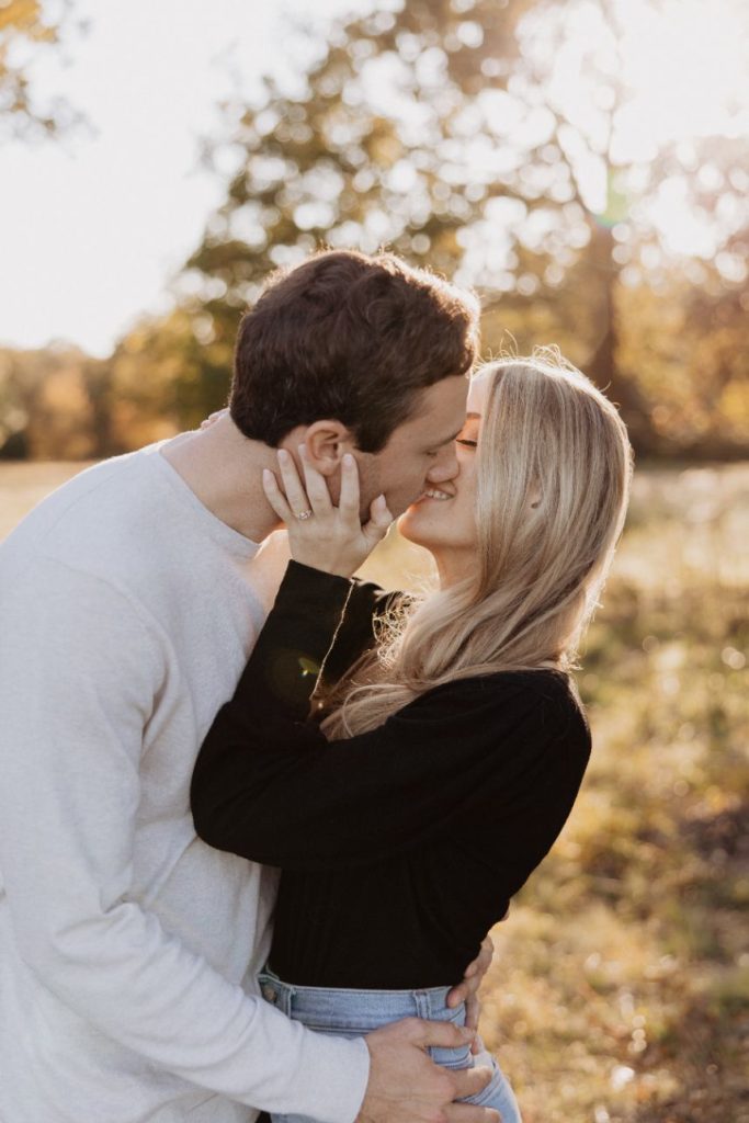 Samantha Vernon and Jared Stevens posed in the most romantic field engagement session filled with love that feels like sunshine and trendy blurred photography captured by Franny Pullin Photography in a wide-open setting. Bride Samantha is originally from the Fort Worth area, graduating from Texas A&M in May of 2020 before moving to Dallas! Enter Jared Stevens, who lived his whole life in Atlanta, Georgia until he moved to Dallas in January 2021 to finish up grad school. The pair first met at a restaurant when they met up with some mutual friends for dinner and it wasn’t long after that they knew they were meant to be together!