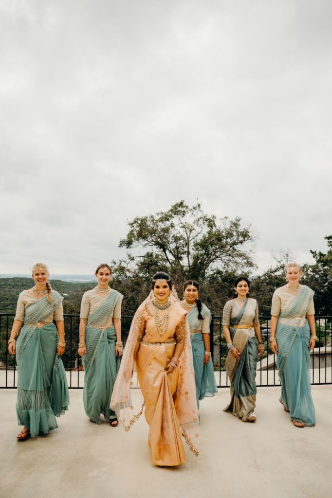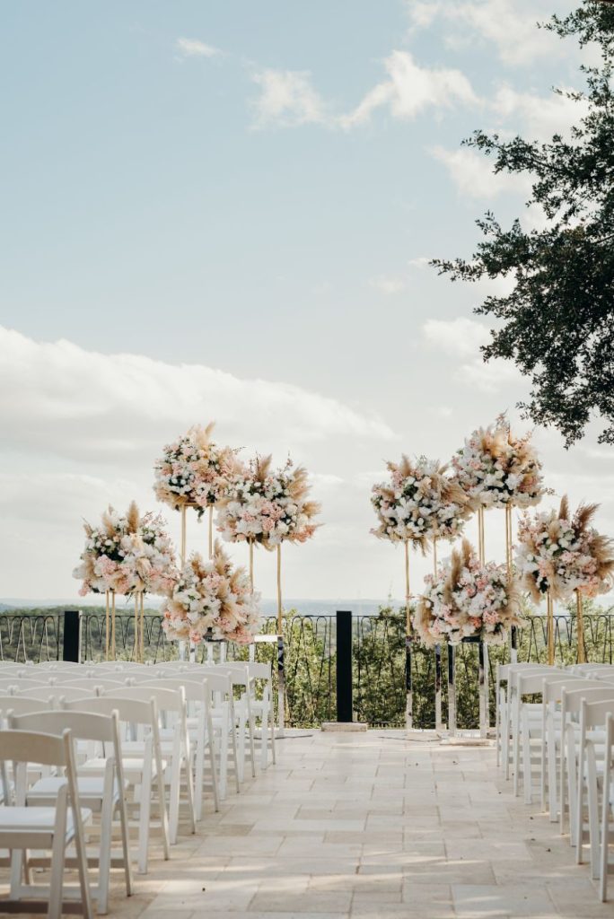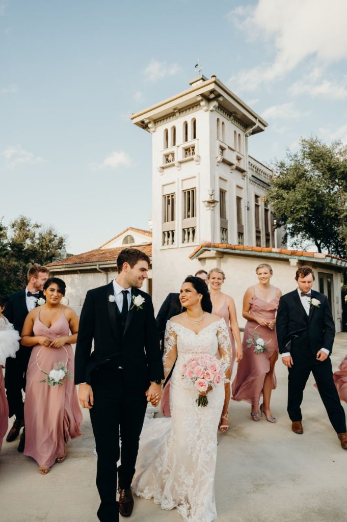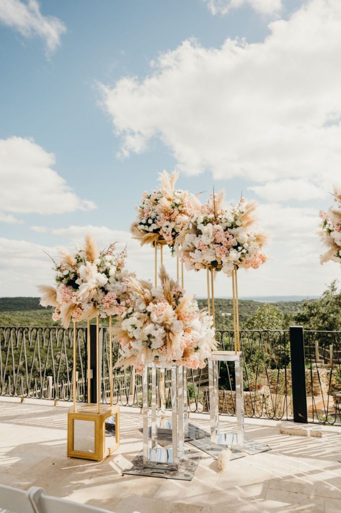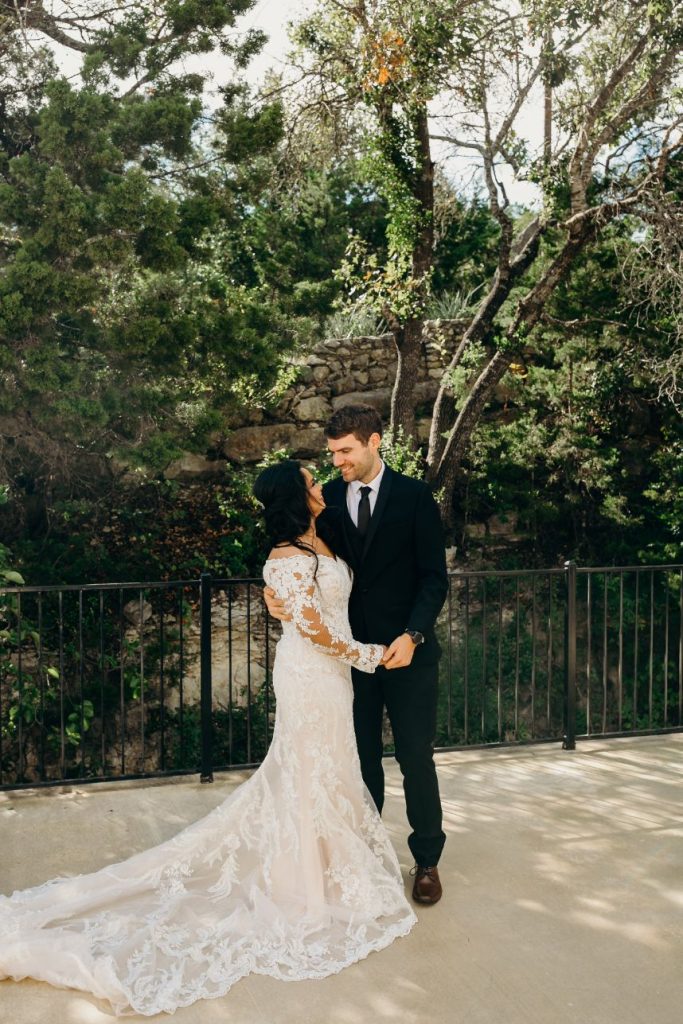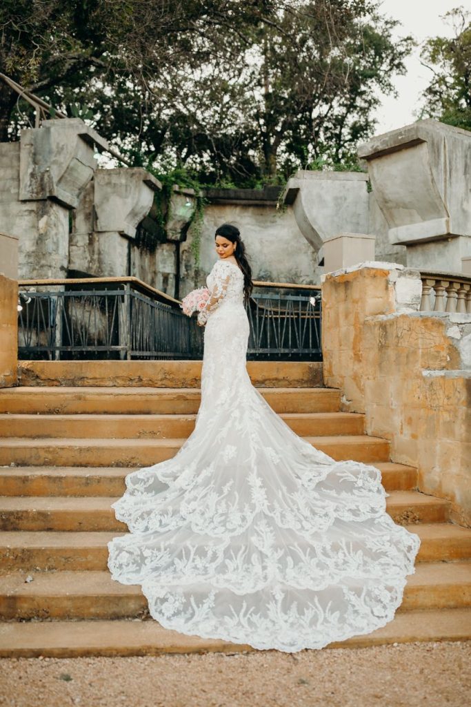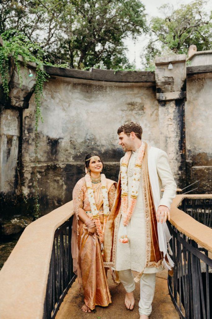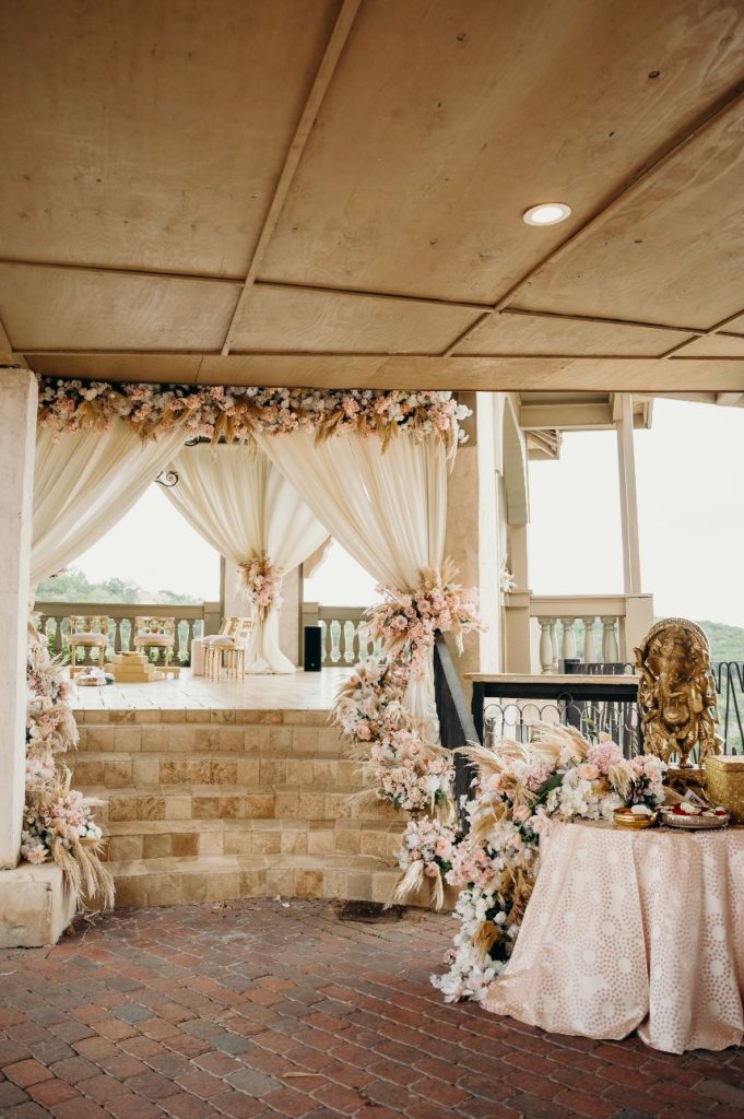 We are almost speechless over the beauty inside Samara and Mark’s soft and romantic wedding. Samara and Mark, who met on their first day of college, had a 23-hour wedding day. The couple began their big day at 6 am with hair and makeup for their Indian ceremony in the morning. Samara and Mark hosted their two ceremonies and reception at Villa Antonia. With its old-world charm, Villa Antonia is nestled in the breathtaking landscape of the Texas Hill Country. The romantic gardens and stone terraces provided the perfect space for Samara and Mark to say, “I do.” Elisa Lopez Photography captured the couple’s Indian ceremony on the terrace enriched with culture and love. The newlyweds snuck off for a few pictures following this ceremony and then immediately began getting ready for their evening festivities.