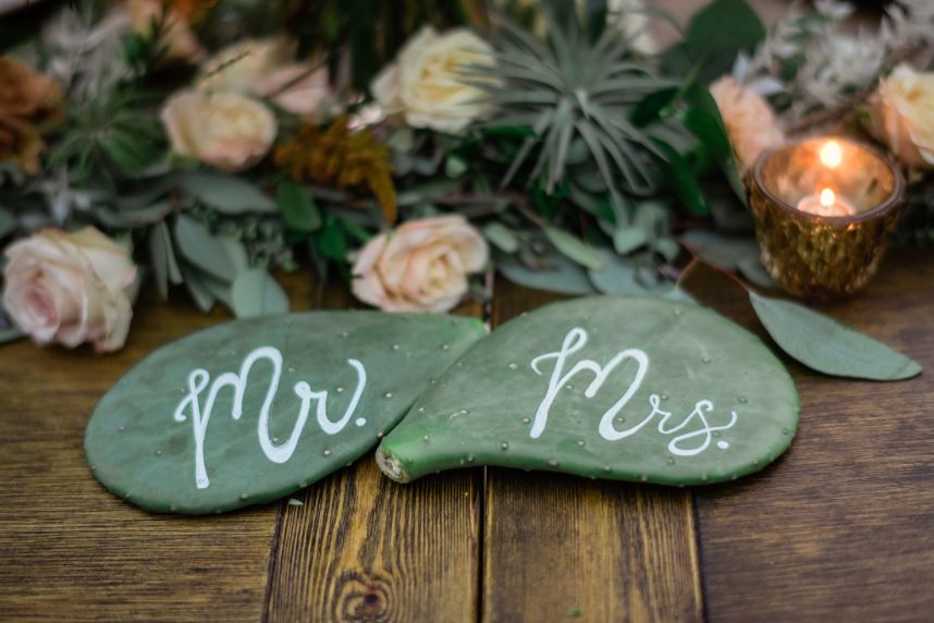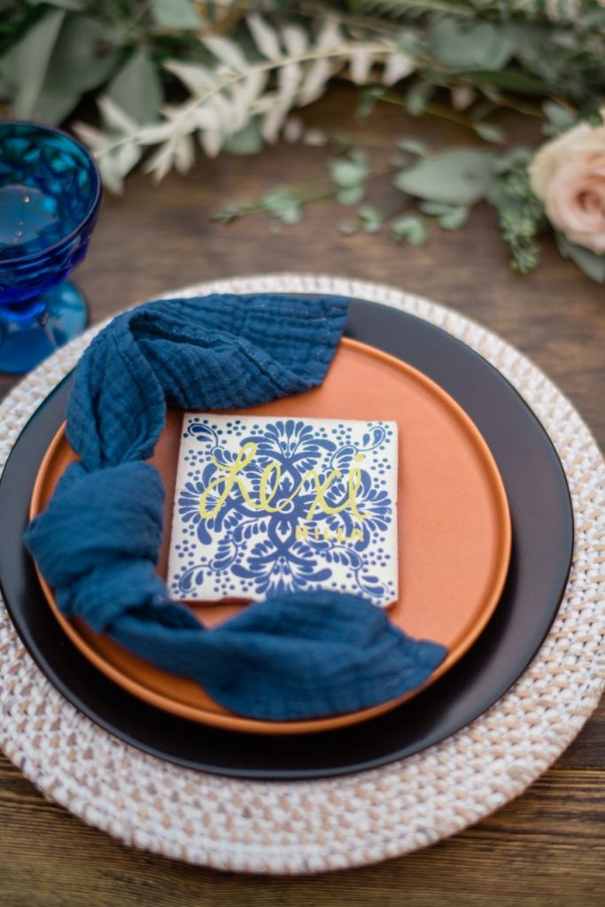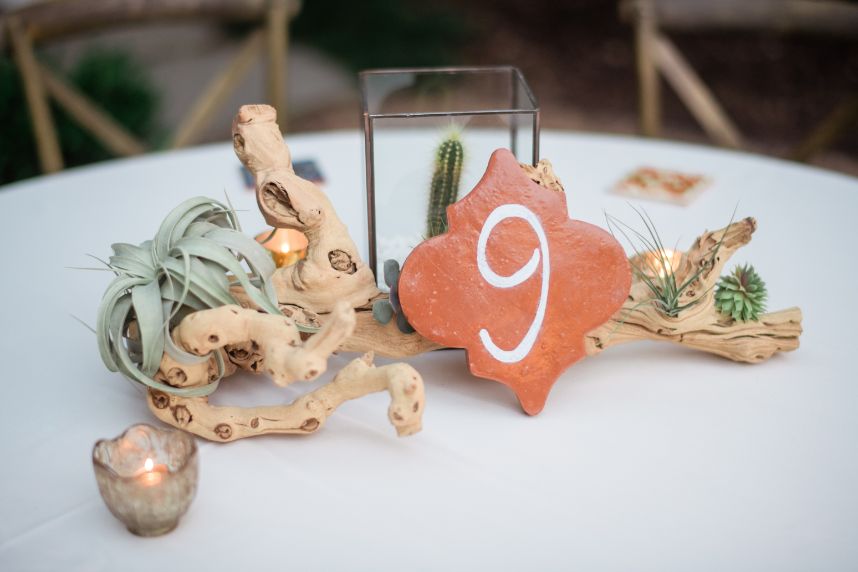 From the bride on her favorite detail: “The details were extra special to me because I created or made most of them – I made the copper arch for the seating chart and welcome sign, the name tiles for each guest, table numbers, Mr. & Mrs. cactus pads and the bar sign. It was a lot of hard work, but meant so much to have guests complimenting the tiles or the details.”