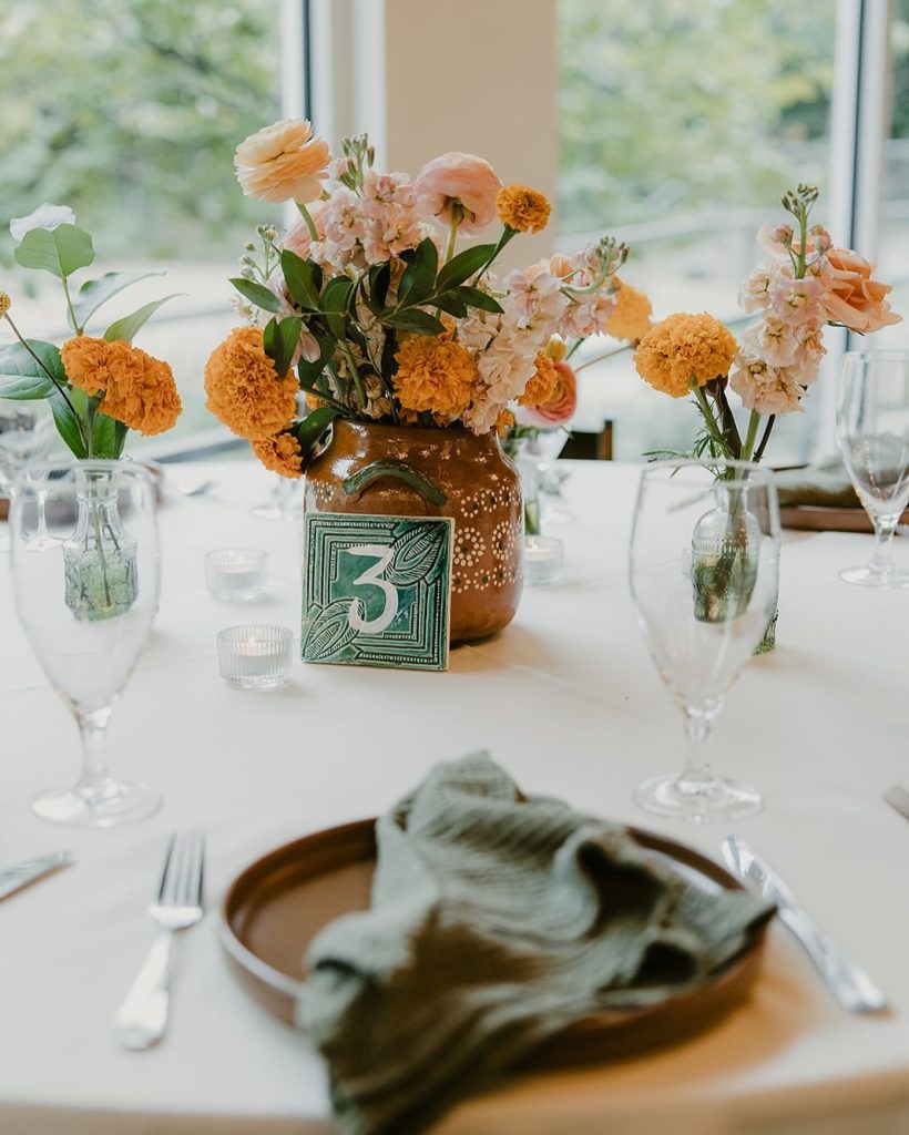 Sara & John had a stunning outdoor ceremony at Springdale Station, complete with a mariachi band, custom papel picados (intricate banners), vibrant marigolds, a cigar bar, and more! ?