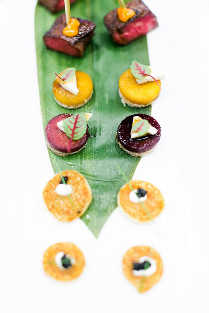 DELICIOUS DISHES: Hotel Granduca provided passed hor d’oeuvres during the cocktail hour and a buffet-style dinner during the reception. The newlyweds had two signature drinks: a Moscow mule and a spicy jalapeño margarita.