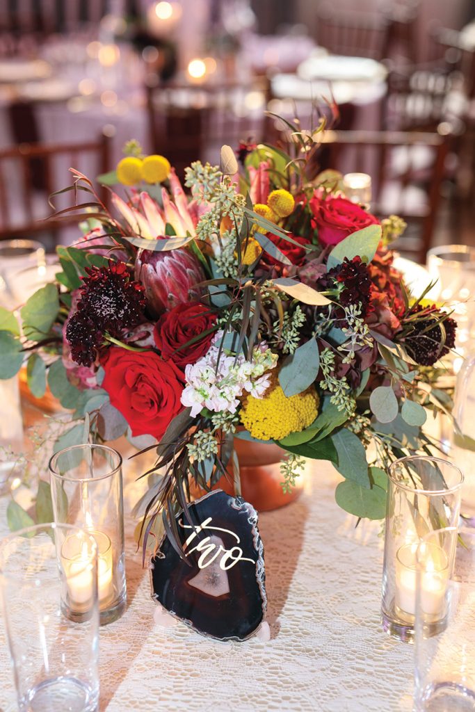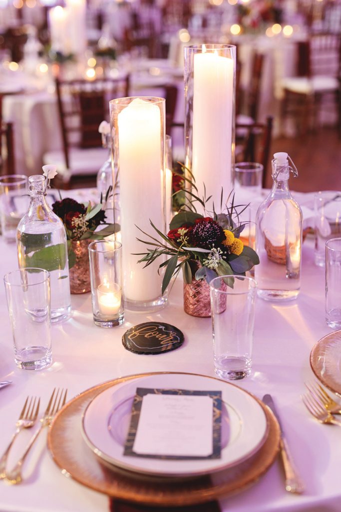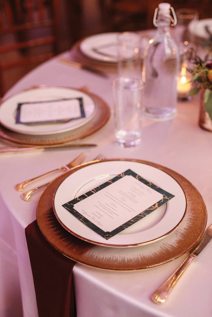 DELICIOUS DISHES: Royal Fig Catering did a tremendous job with Sarah and Gavin’s catering. The food was exceptional, as was their service. Dinner service consisted of roast butternut squash salad with hazelnut and manchego, beef tenderloin with truffle mash and arugula, seared striped bass with celery root puree, Brussels sprouts, whole roasted heirloom carrots with carrot-top pesto, and rosemary and sea salt focaccia. To finish off the evening with a late-night snack, Sarah and Gavin had potato egg and cheese, veggie, and brisket and egg breakfast tacos.