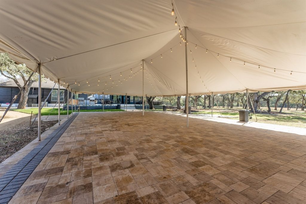 From there, guests transition to cocktail hour by the pool or on the expansive outdoor deck, where open skies and Hill Country views set the tone for the evening ahead. Receptions unfold under a beautifully lit tent, perfect for dining, dancing, and celebrating under the stars.