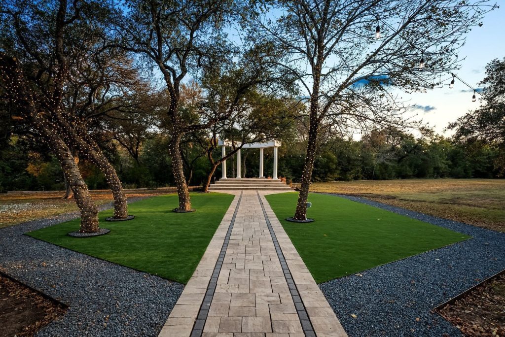 For couples craving a more intimate and secluded experience, Serenita Estate delivers. Surrounded by rolling hills, mature oak trees, and wide-open Texas skies, the property feels like a hidden gem tucked away from it all.