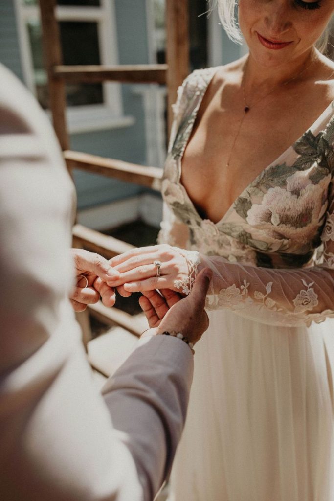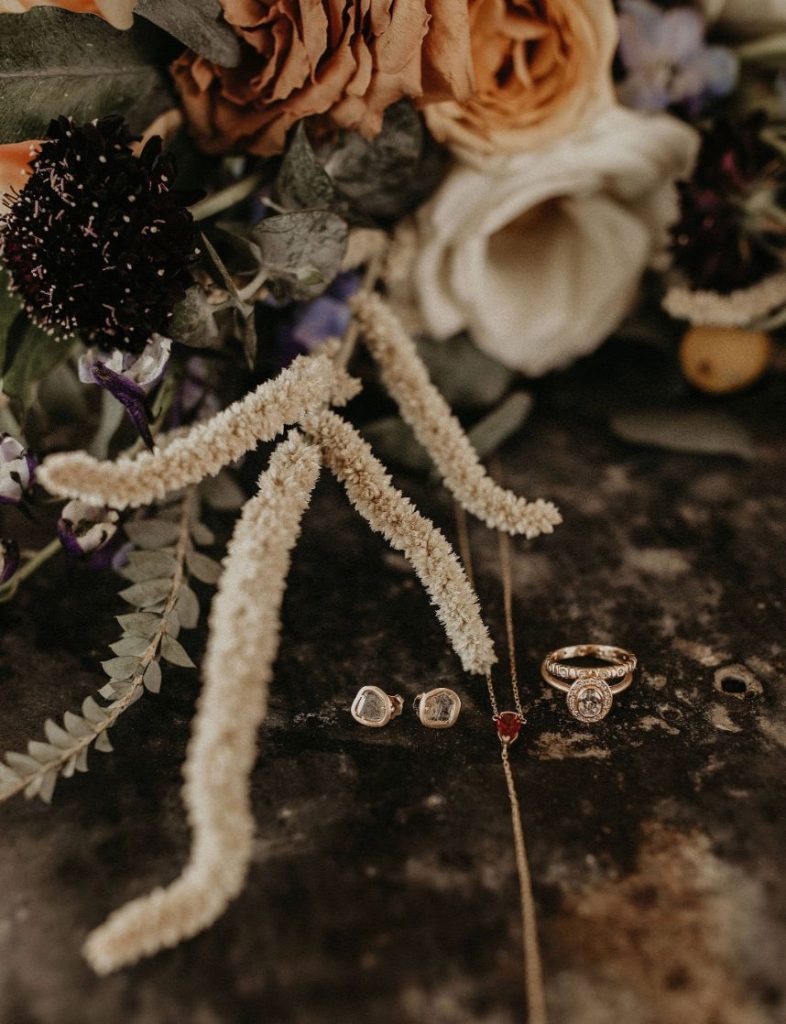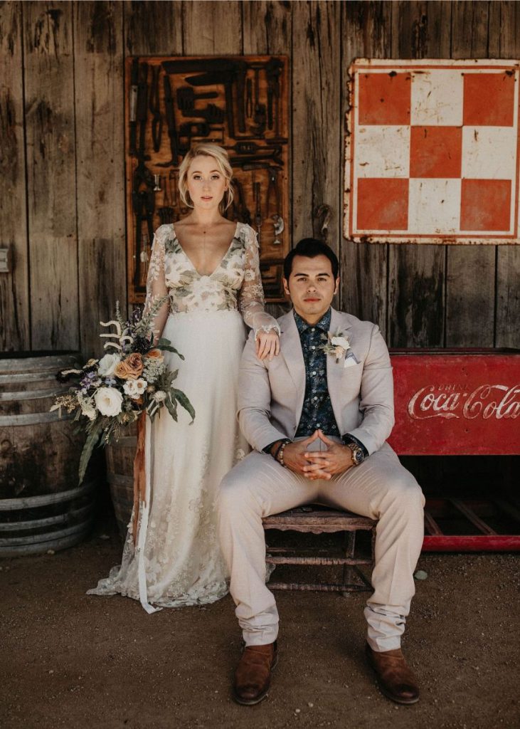 From the photographer: “This was an incredibly fun event to be a part of, and knowing that this was going to be my last inspiration shoot for a while, I couldn’t be happier ending on this note! I thought it’d be great to have our amazing coordinator, Jazmin, share a quick note about the inspiration behind the shoot, so without any further ado, here’s what she had to say: ‘The inspiration behind this wild and free western elopement shoot was completely centered around the intricate work of the bride model’s gorgeous dress while the delicate hair and makeup added a light and airy touch to complete the bride’s gorgeous look. The decor and florals combined perfectly to create a simple wedding altar that had all of us gushing! I just know you’re going to love it too!'”