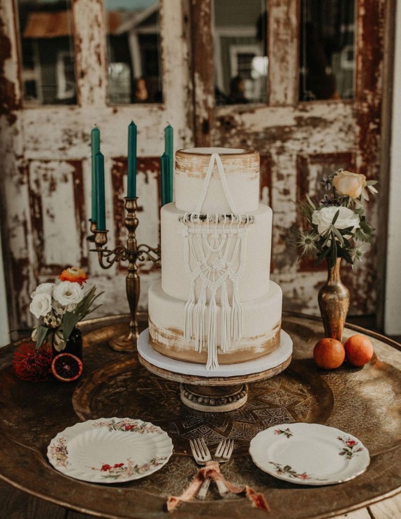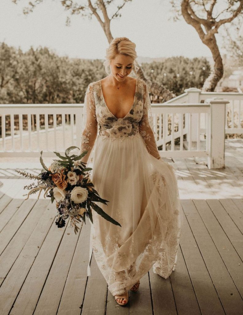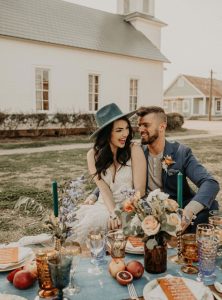 Austin photographer extraordinaire Nikk Nguyen has a treat for us today in the form of this stunning summery Texas ranch styled shoot featuring an incredible show-stopping gown from none other than Unbridaled, of course! Unbridaled is the Austin bride’s go-to boutique for unique, out-of-the-box wedding gowns, and this floral number is no exception. How beautiful are the dark florals on the bust, mirrored in the delicate lace long sleeves? It’s the perfect choice to complement Wildly Cultivated‘s organic, unfussy blooms and the summery rustic scene at Star Hill Ranch. Whenever you have an ultra-rustic venue, it’s a great idea to play up the vintage elements and call attention to the historic aesthetic, which Loot Vintage Rentals accomplishes so well with the furniture they provided. Macramé frosting is the icing on the cake for this scene, and wow, we wish we could dig right in! Comfortable, bohemian vibes permeate throughout the entire day, pairing casual with boho, rustic with refined. The bride’s hair and makeup by LUSTREbella goes perfectly with the style of the dress and of the day, too! Enjoy scrolling through Nikk’s images!