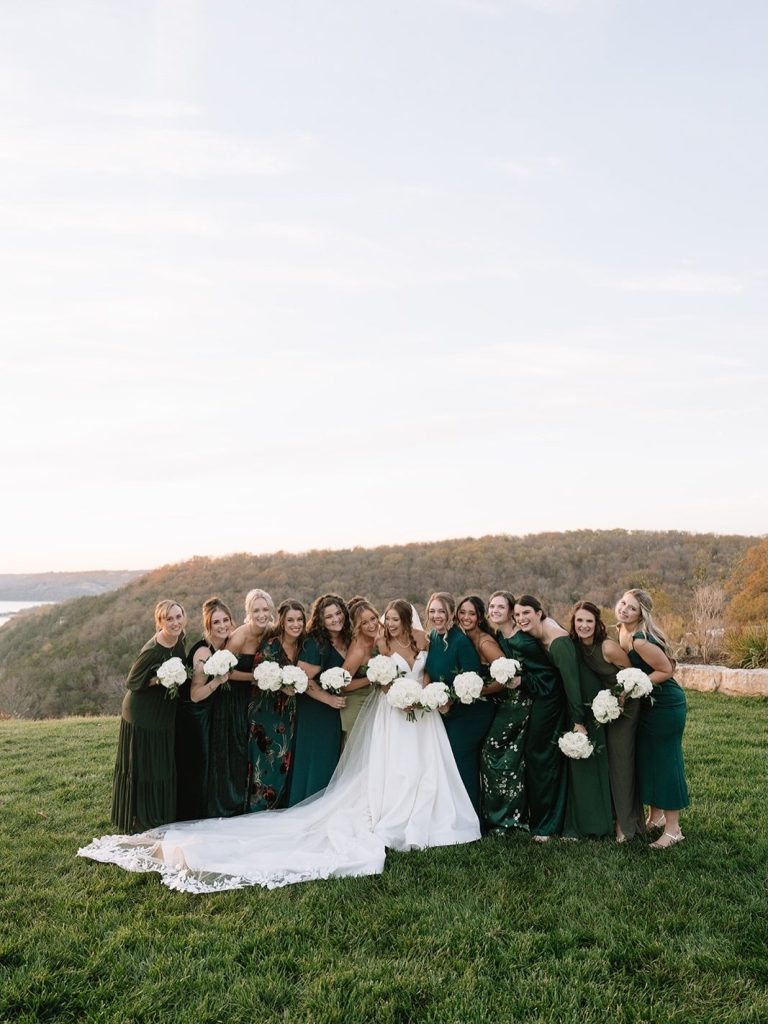 Sidney + Max brought a touch of Texas charm to the Ozarks, celebrating with rich shades of green that created the dreamiest late-fall aesthetic with hints of winter elegance. ⁠