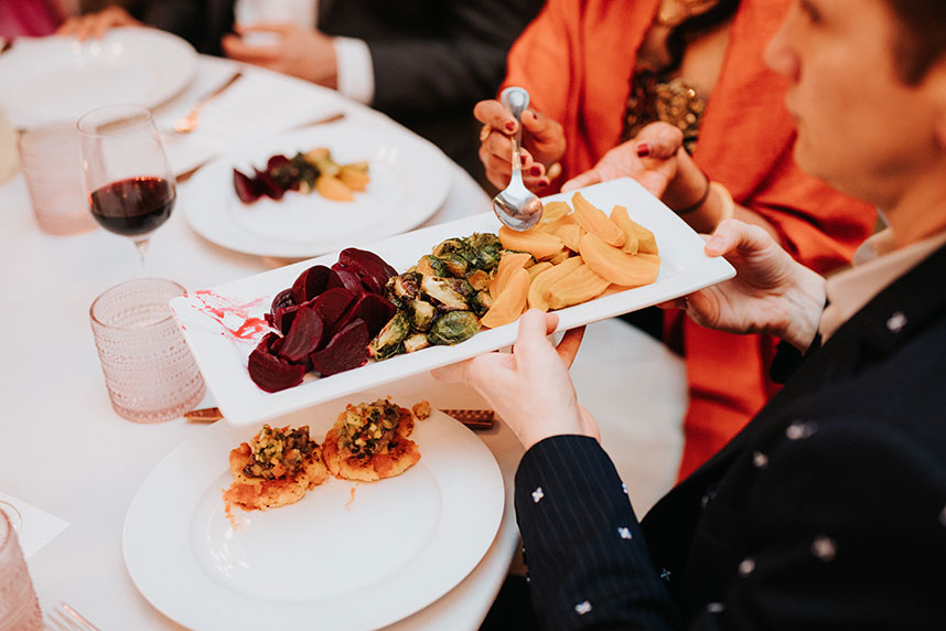 From the bride: “Austin Catering was terrific. They were easy to work with, well-priced, very responsive via phone and text and they pulled off an amazing vegan menu. What I loved the most was that the menu was all plant-based and didn’t have any meat alternatives. It was all just straight up creative vegetable dishes. our guests raved about the food.”