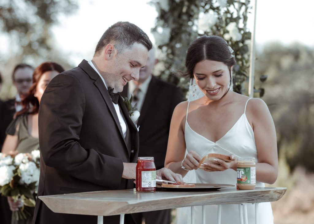 Jovanna and Matthew’s nuptials were simply gorgeous with white, green and pops of terra cotta! Every detail was chic and thoughtful. Did you see the PB&J sandwich exchange at the ceremony?! Yum-so unique!