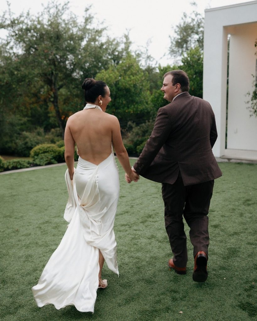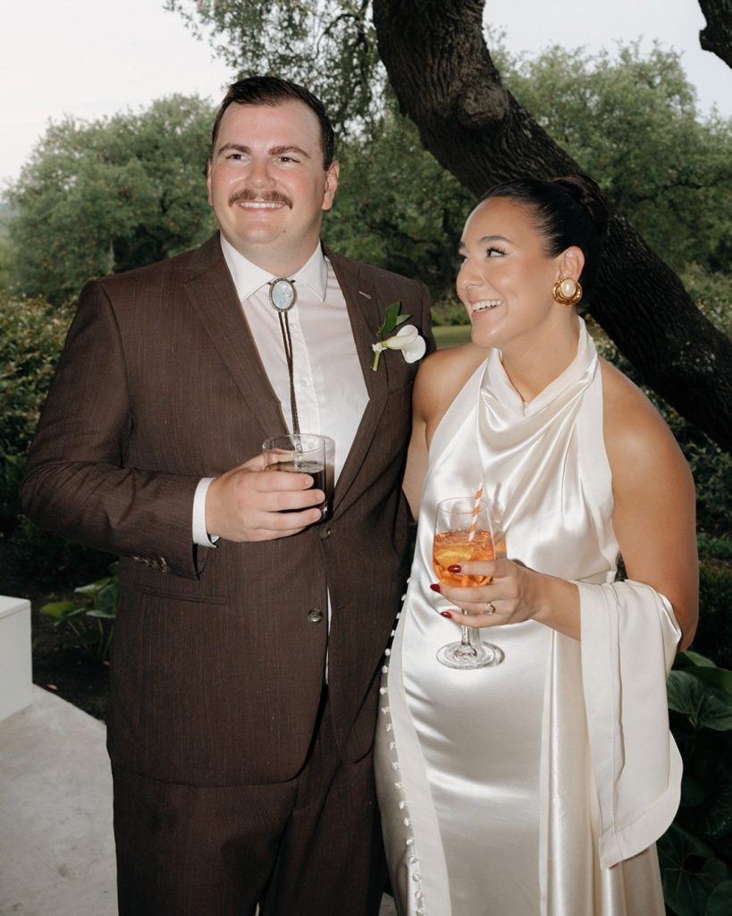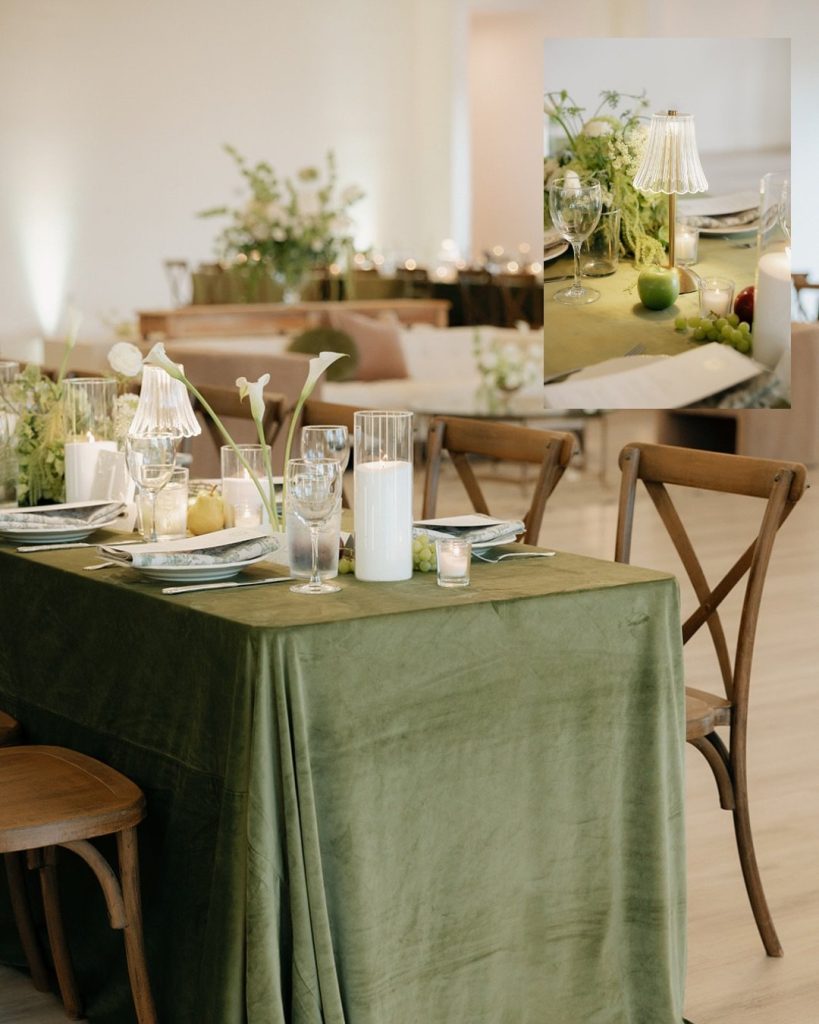 Sophia and John’s wedding was effortlessly chic and full of warmth. Lush greenery, glowing candlelight, and rich green tablescapes set a romantic, garden-inspired tone, while cozy lounge moments invited guests to linger. From Sophia’s sleek satin gown to John’s classic brown suit, every detail felt timeless, intimate, and beautifully intentional. 🍐🍸