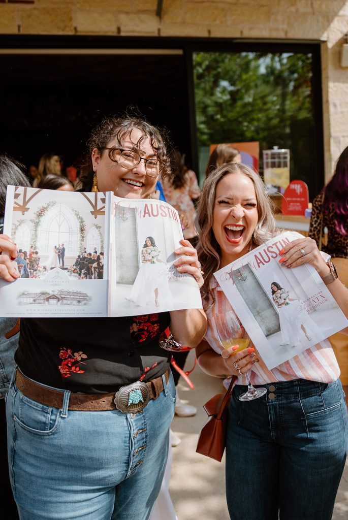 Guests were invited to indulge in delicious bites and drinks provided by Hotel Magdalena, as well as a mouthwatering donut wall by The Cupcake Bar with donuts as beautiful as they were delicious! Attendees could take a spin on the lash, lip, and makeup wheel by Crown of Glory Beauty and delight in music provided by the talented Dart Collective. Finally, after looking through the stunning Austin weddings featured in our Spring/Summer 2023 issue, guests took home the cutest favors by Whisk & Twirl LLC.