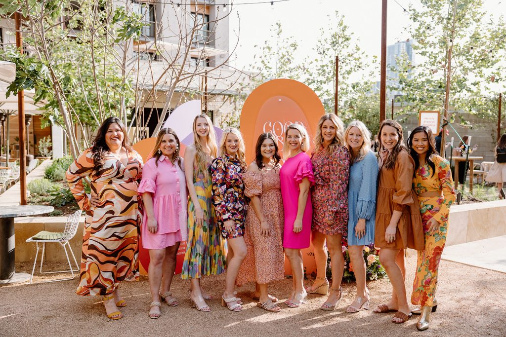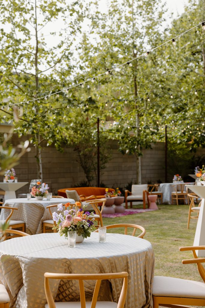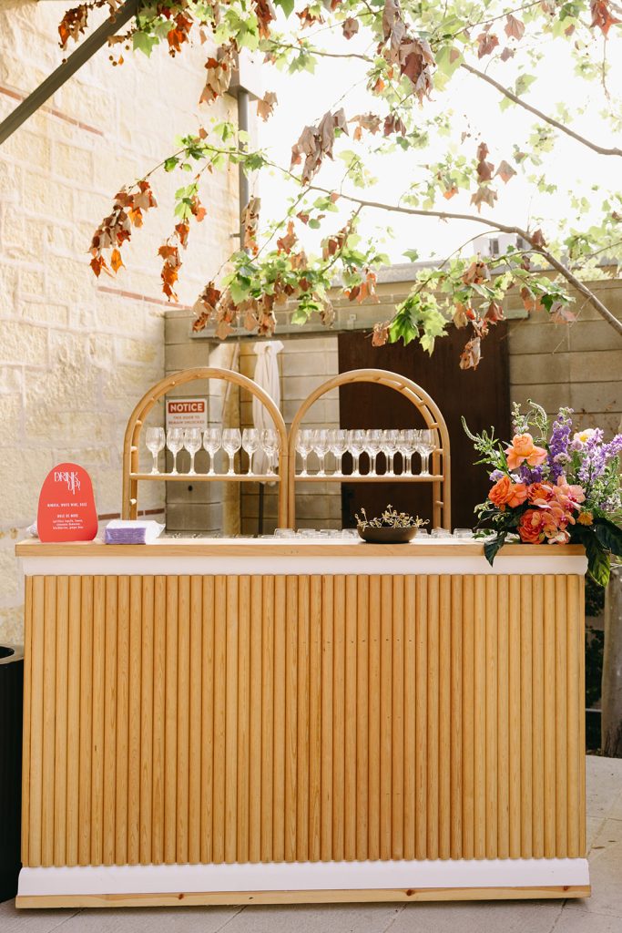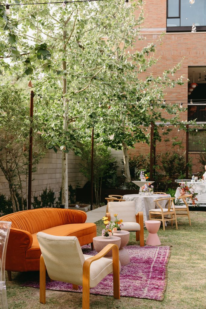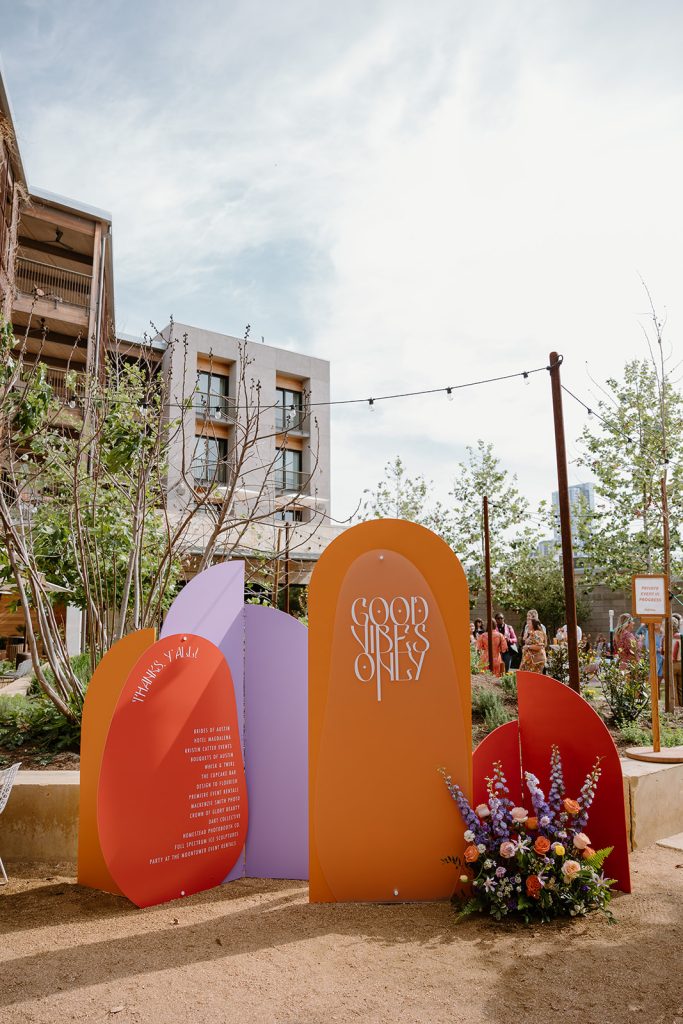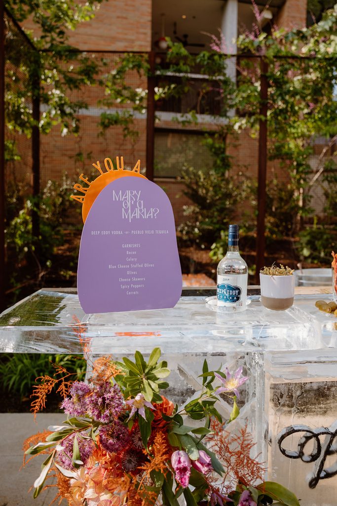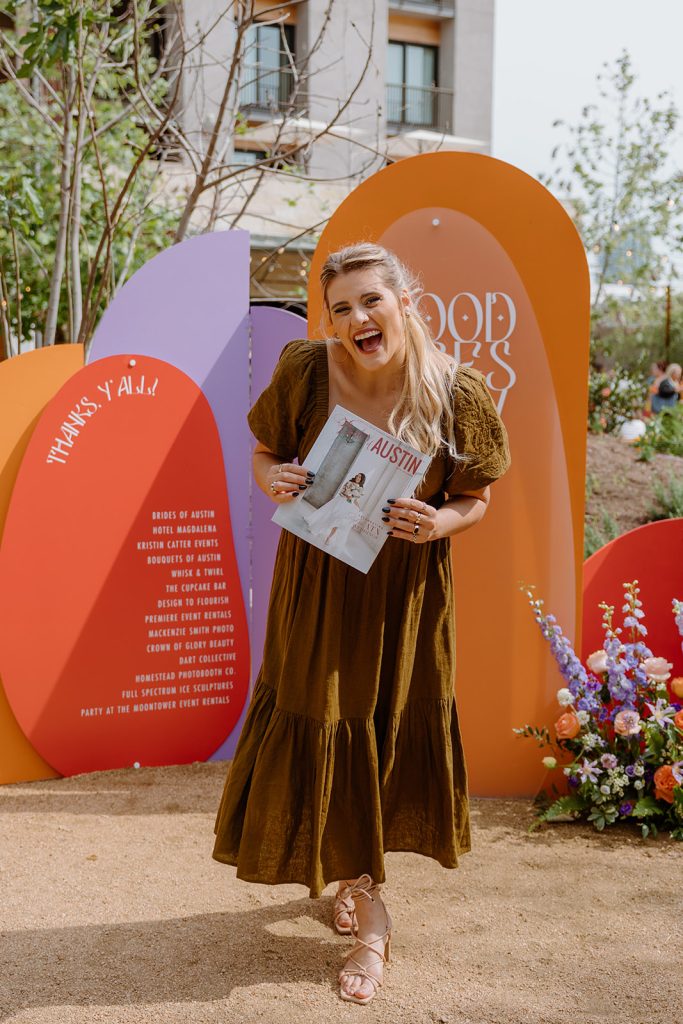Set against the picturesque scenery of Hotel Magdalena, our Brides of Austin 2023 Issue Release, planned by Kristin Catter Events and beautifully captured by Mackenzie Smith Photo, was one for the books! Reminiscent of the ‘70s, the decor perfectly accented the retro vibe of Hotel Magdalena’s outdoor courtyard. The punchy barback and lounge furniture by Party at the Moontower Event Rentals were accented by florals from Bouquets of Austin that were rich with purple, orange and peachy hues. Complemented by tabletop rentals and draping by Premiere Events, the most adorable photo booth by Homestead Photo Booth Co., custom signage by Design to Flourish, and an incredible Brides of Austin ice bar by Full Spectrum Ice Sculptures, the event was truly a show-stopper.