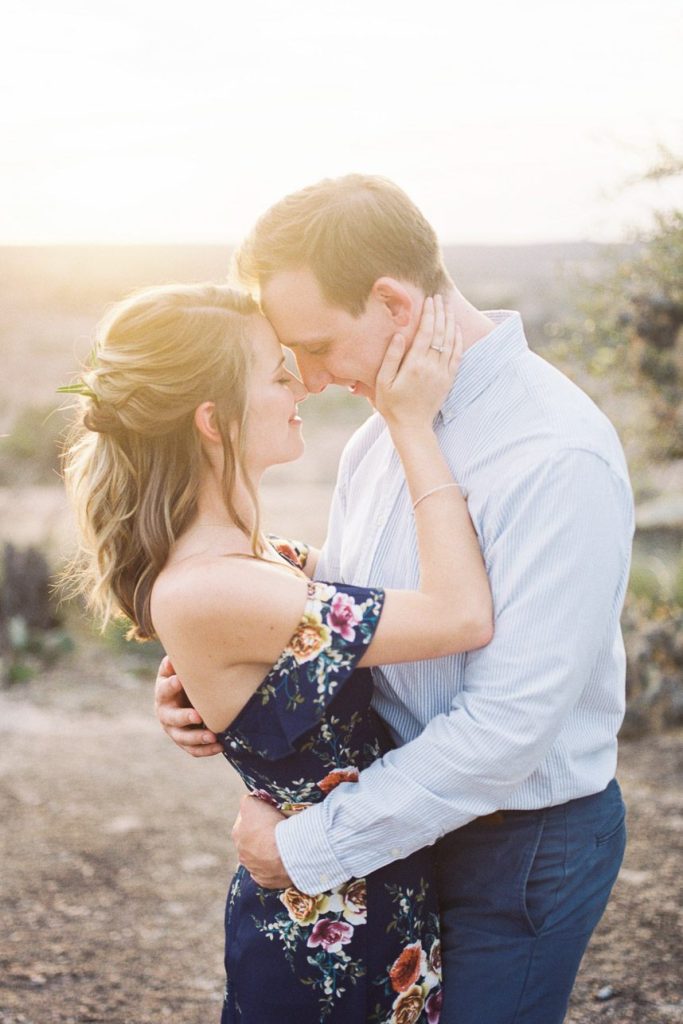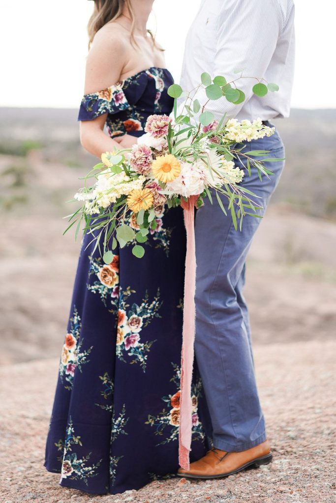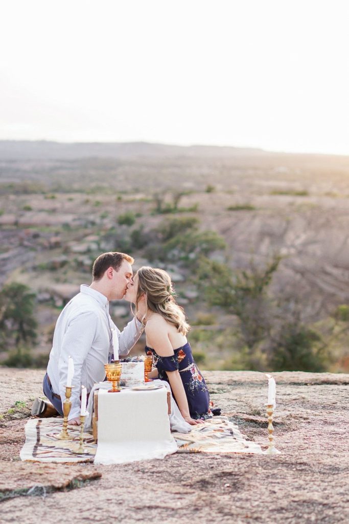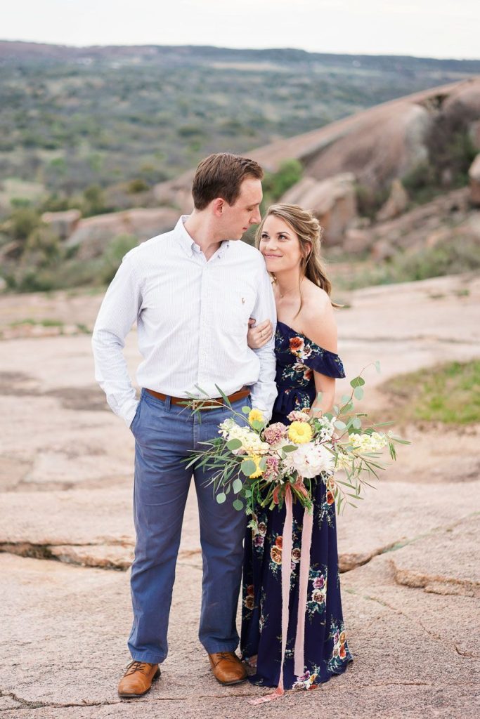 From the photographer: “Wyatt and Annie are high school sweethearts and a couple of my dearest friends. When they asked me to take their three-year wedding anniversary photos, I was thrilled and wanted to treat them to an intimate picnic styled shoot in a beautiful location. We chose Enchanted Rock because Wyatt and Annie frequently visited this park while they were dating from high school to college. The shoot was inspired by their summer wedding with pops of yellow florals similar to Annie’s wedding bouquet. Annie and Wyatt were so in love with the thoughtful setup. They popped champagne, re-read their vows and exchanged laughs and kisses all before the Texas sunset. It was the perfect way to celebrate their loving relationship and three years of marriage.”
