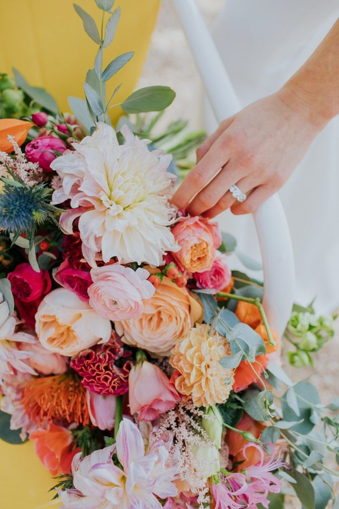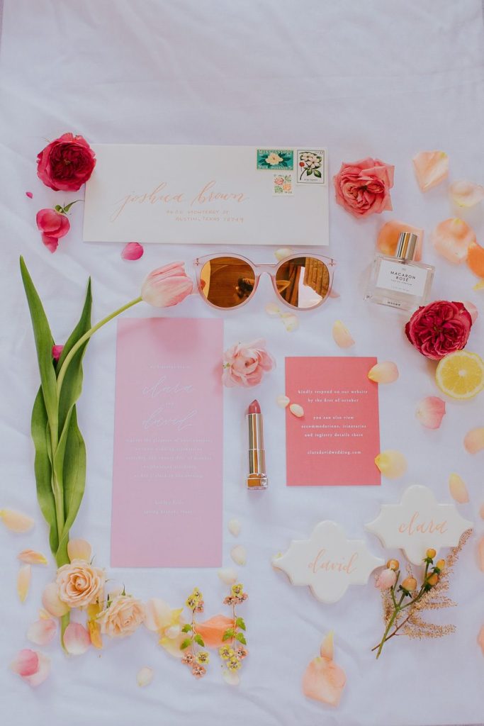 Bright and cheerful tones of yellow, pink and teal in this summer shades color inspiration from Amanda Pomilla Photography are just the perfect hues to kick off summer wedding season in the most beautiful way! Flipping through the pages of the Spring/Summer 2018 issue of Brides of Austin, you’ll find this editorial, photographed at Hidden Falls, full of fun summer tones that have us dreaming of warmer days. A crisp and clean invitation suite from Archer and Olive in bold coral and retro pink hues sets the tone for a vibrant yet relaxed summer affair. Cakes from Simply Delicious Custom Cakes boast every color of the summer rainbow and are oh-so-delicious, to boot! Bold blooms in summer shades by Whim Hospitality complement every element, accentuating the cakes, highlighting the venue and making a statement on their own, too. We’re obsessing over the neckline of the bride’s gown from Serendipity Bridal and her chic, fresh-faced look by Silique Organic Salon. Summer cocktails from Deep Eddy Vodka adorned with lemon wedges and loose florals serve as an invitation to stay a while and enjoy the day. We certainly would!  Turn to page 137 of the latest issue for more bright and cheerful summertime inspiration! Cheers!