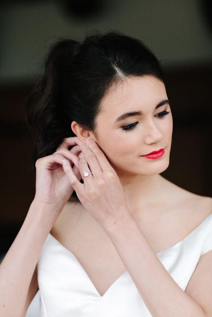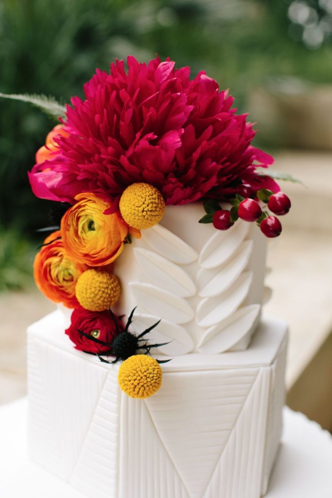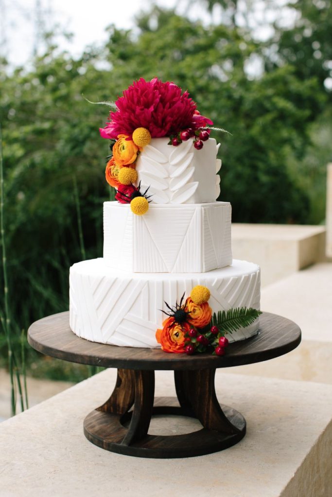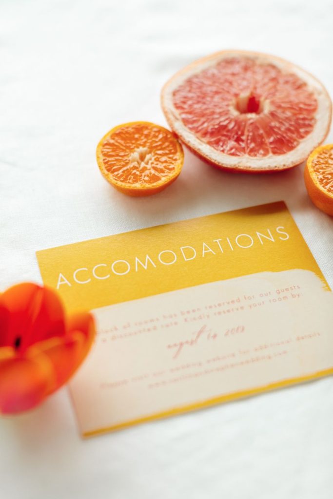 Dreaming of bold colors and refreshing citrus accents for your wedding day? The top-notch vendor collaboration for this shoot came up with one of the most fun, bright, and certainly juiciest palettes we have ever seen! With the industrial edge of Austin Central Library as the background, each modern and feminine detail holds its place – including the ultra-mod lounge setting by Party at the Moontower Rentals. To start, the bride’s enviable look is just polished enough to remind us that this is indeed a wedding editorial. Her tousled pony and pop of lip color from Jose Luis Salon is so fresh. Paired with a classic off-the-shoulder gown from Julian Gold, the entire look is refined for this tropical, urban fusion. The lively invitation suite from Design to Flourish balanced color with each piece of flowery artistry from The Flower Girl. Flowers even made their way to the geometrical cake by 2Tarts Bakery. With the talented Melissa Glynn of Melissa Glynn Photography there to capture it all, no detail went unnoticed. Scroll below to see more refreshing citrus wedding inspiration!