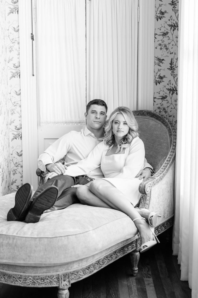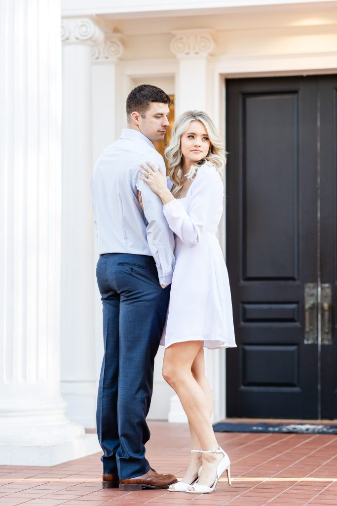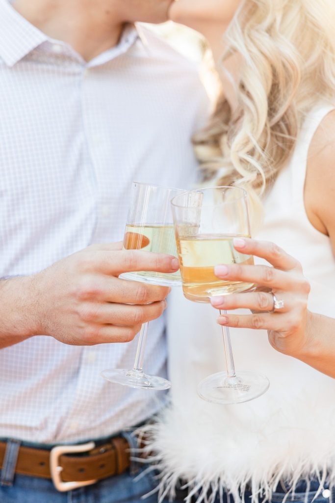 Tara + Mitchell took full advantage of the beautiful sunset at Woodbine Mansion for their engagement session. The couple ended the session with a champagne pop and toasted to all the joy and celebration to come!