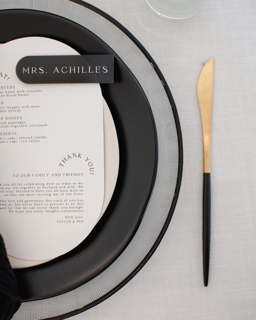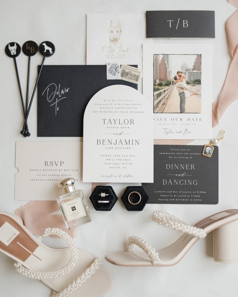“Every detail, from stationery and cuff links to signage and custom ice cubes, was thought out and executed. They even had a monogrammed ice luge, a black & white dance floor with marquee letters, lounge furniture, and a photo booth, creating a Pinterest-worthy celebration.” – Ashley Nicole Affair
