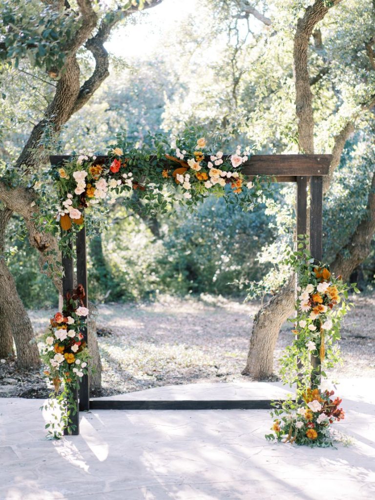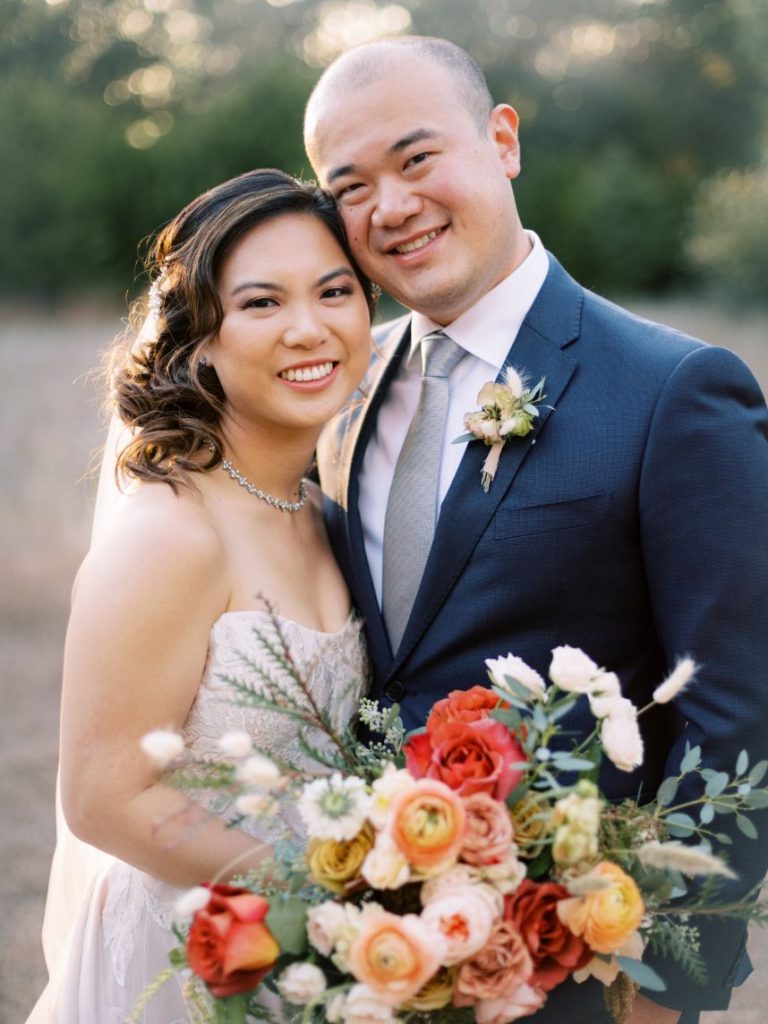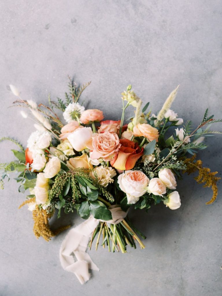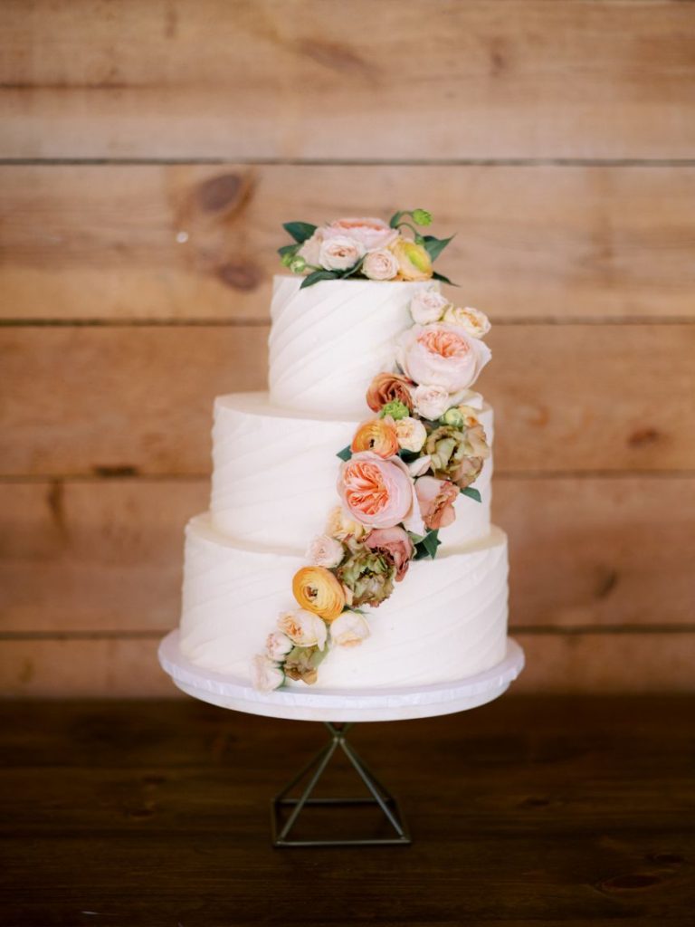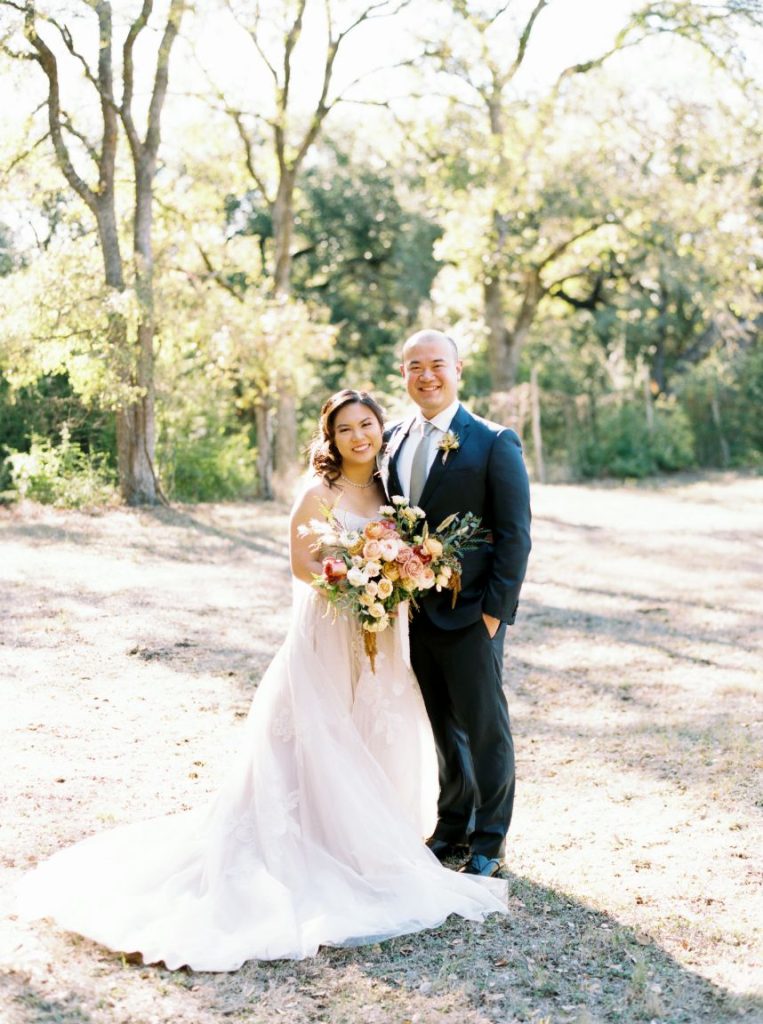 We all know how unbelievable gorgeous a sunset over the Texas horizon is, and that’s exactly why this couple wanted their fall wedding day to reflect that gradient of tones! Shirley and Kevin are huge lovers of Austin and everything it has to offer, and they decorated their wedding day to showcase all of the reasons they love this city. Sweet shades of peach, dusty rose and buttercup yellow cover this scene at The Addison Grove in autumnal warmth and coziness, bringing in a bit of that unique Austin flair. Settled against rustic dark wood accents and cascading lush greenery, this whole day has an organic, nature-inspired feel that keeps us longing for crisp fall days. The Bloom Bar’s expert floral artistry draws us more and more into this scene, as the organic and rustic-yet-elegant florals in soft autumnal hues work in perfect harmony with the bride’s vision to keep things simple, natural, and to highlight all of the beauty of The Addison Grove. Shirley’s timeless and romantic bridal look of a classic A-line, strapless bridal gown with a floral lace overlay in the softest shade of blush is truly stunning and combines with the tones of her day seamlessly. Their lovely three-tiered, textured icing wedding cake from Sweet Treets Bakery with a stunning floral installation was a perfect way to end the evening before heading to the JW Marriott Austin. Scroll to see the Texas sunset-inspired tones of this day and to read about the bride’s favorite memory. Cheers to Mr. and Mrs. Wang!