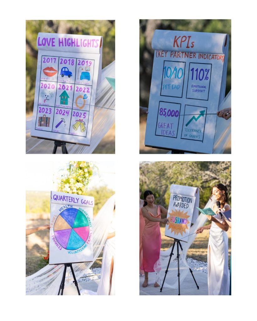 From the custom photo-op install to the surprise petting zoo, this wedding was a total masterclass in personality. (And yes, that was a PowerPoint at the altar. Iconic.)