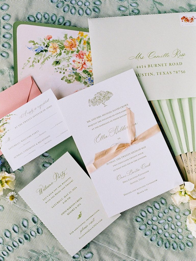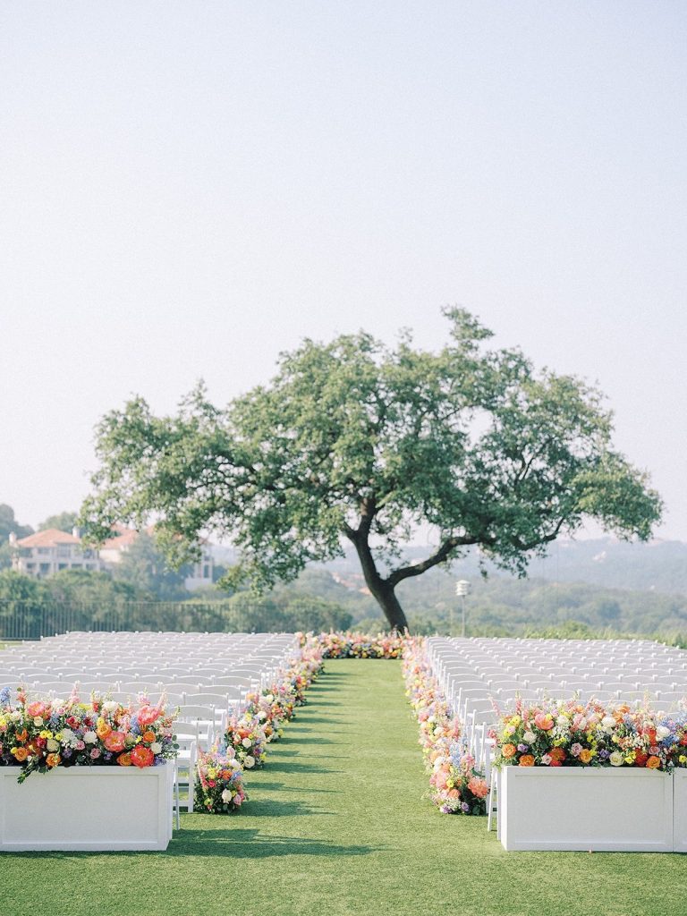 Love was in the air for the Langleys! Their May wedding at omnibartoncreek was the dreamiest kickoff to summer — with colorful blooms lining the aisle, a matching cake, fun printed linens, and pastel bridesmaid dresses to tie it all together. ???
